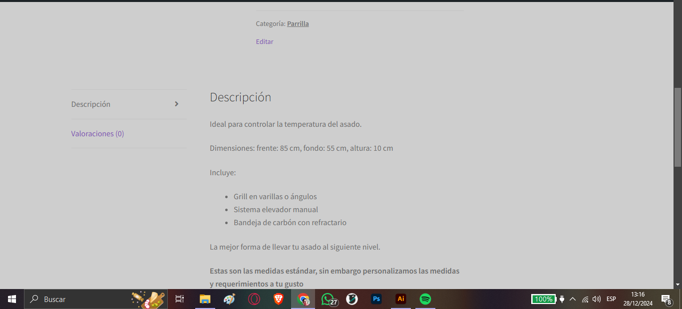 La meta principal era desarrollar una página web funcional y atractiva que no solo permitiera dar a conocer nuestros productos y servicios, sino también impulsara las ventas al facilitar el acceso de nuestros clientes a nuestra oferta. Para este proyecto, elegí trabajar con la categoría de producto de parrillas, ya que es uno de nuestros productos estrella y representa la calidad y personalización que ofrecemos.