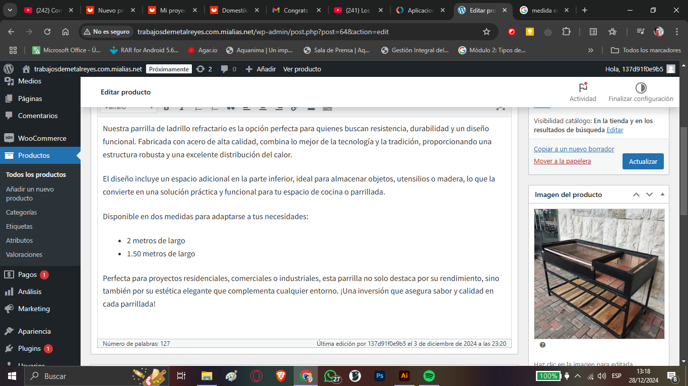 Mi proyecto del curso: Creación de una tienda online en WordPress trabajos de metal reyes