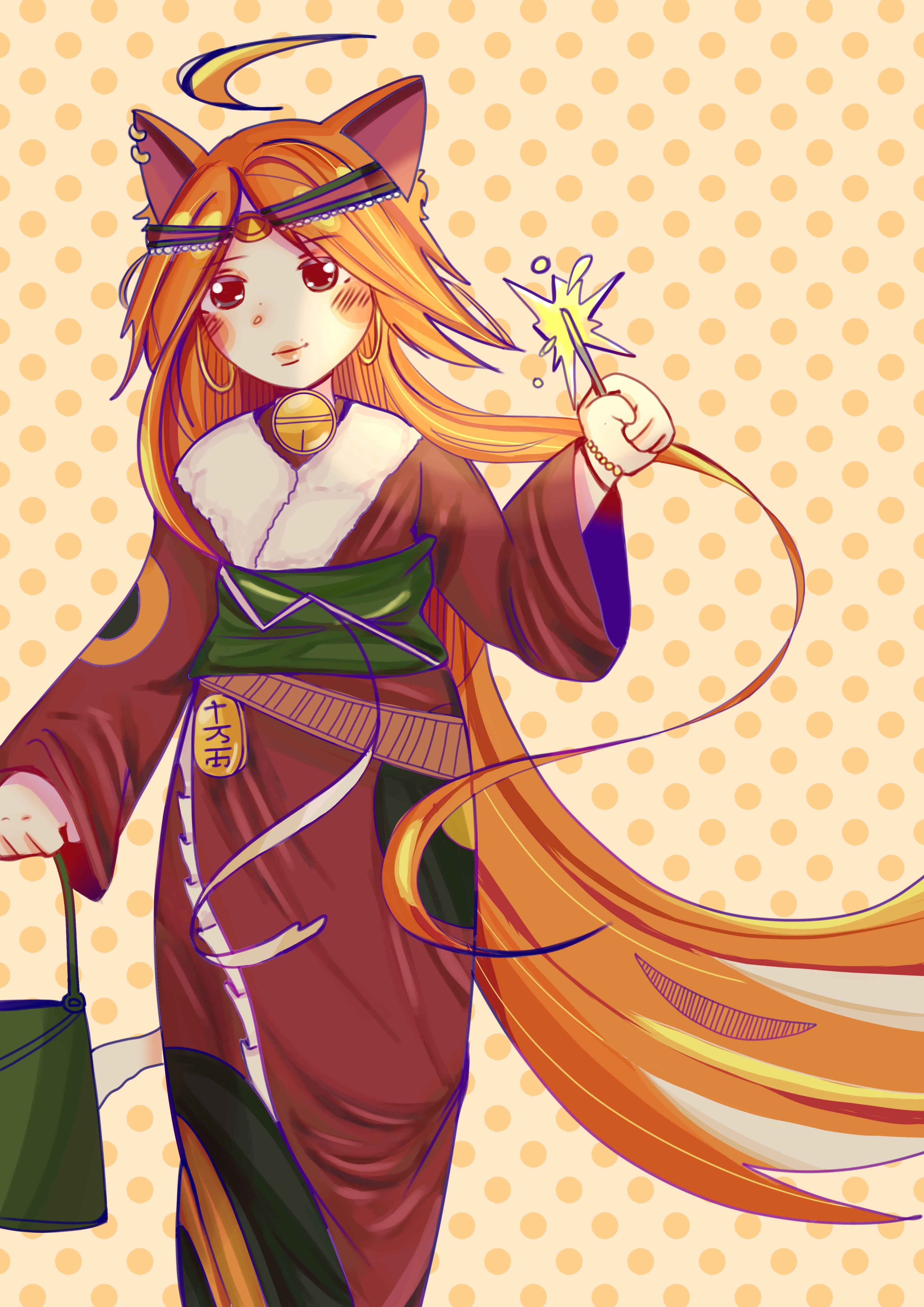 Me base en una chica mitad zorro con una bengala en la mano y portando un kimono