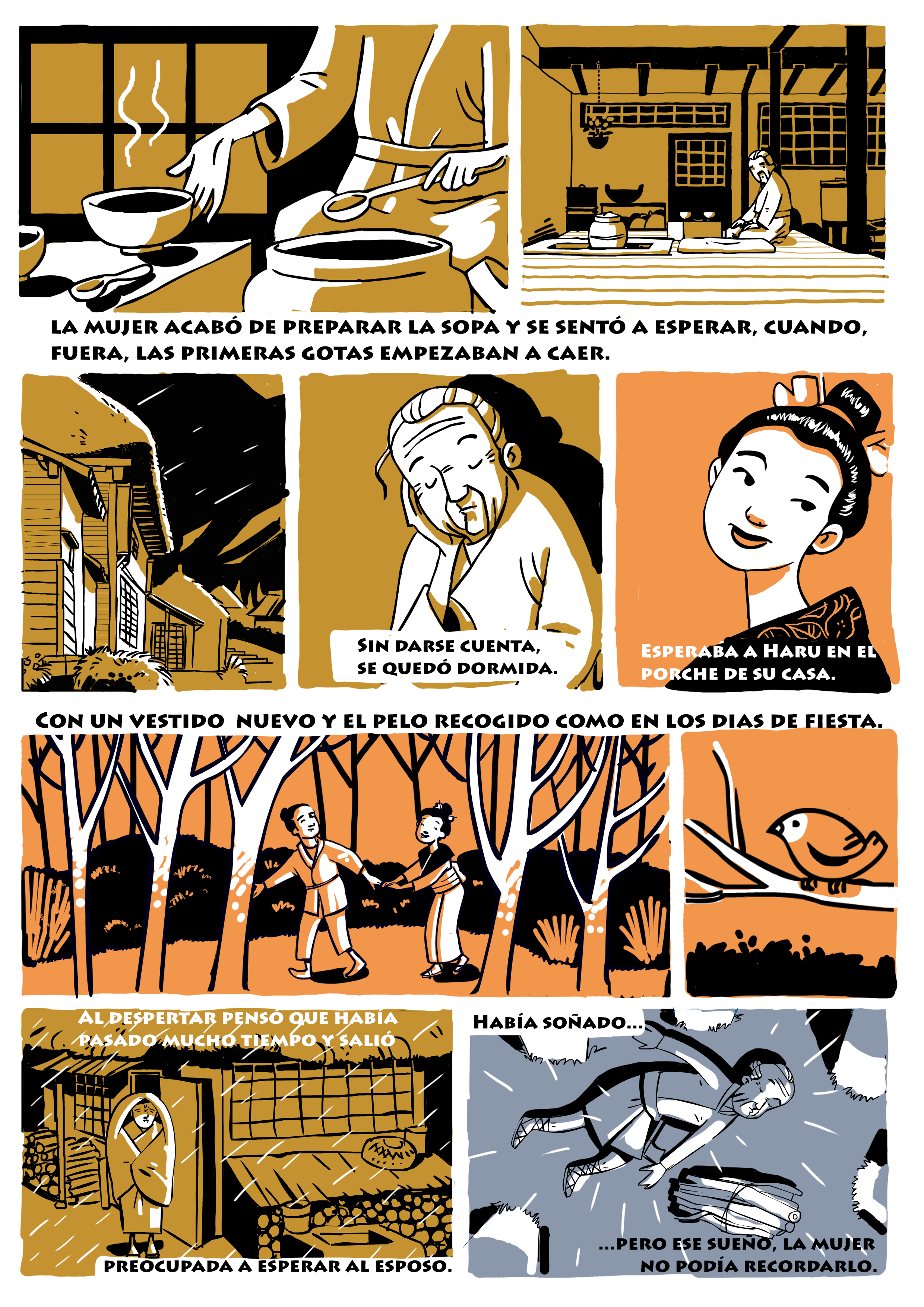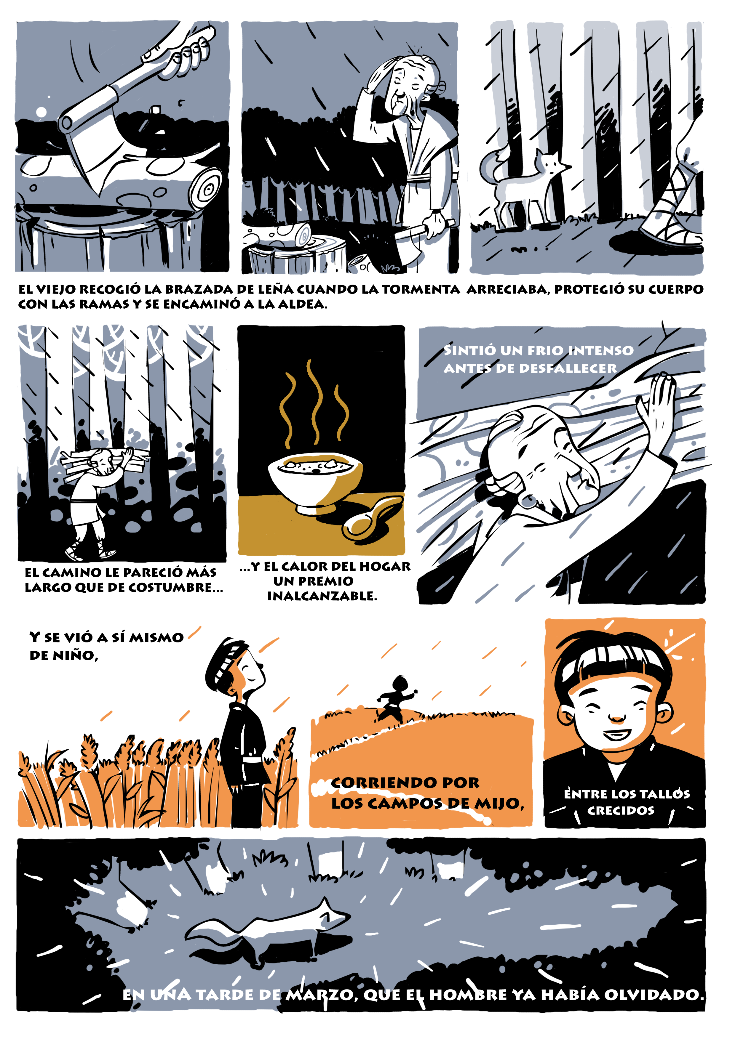 Belo trabalho ... Eu só colocaria o pequeno nó do lettering escolhido para os textos ... do contrário, parece-me um deleite da linha e da história. Parabéns!