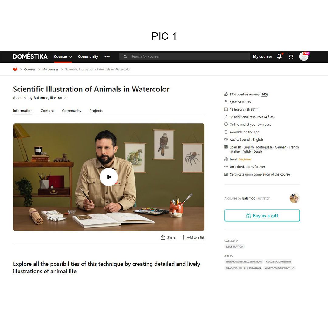 Hello my name is James Donovan ( a post grad animation student with no industrial experience to date) and this is a tutorial of my very first scientific illustration. The name of this course is not coincidental as it is a direct result of following the techniques demonstrated in the existing Domestika course“Scientific Illustration of Animals in Watercolor” by “Balamoc (pic1) but with a digital approach.