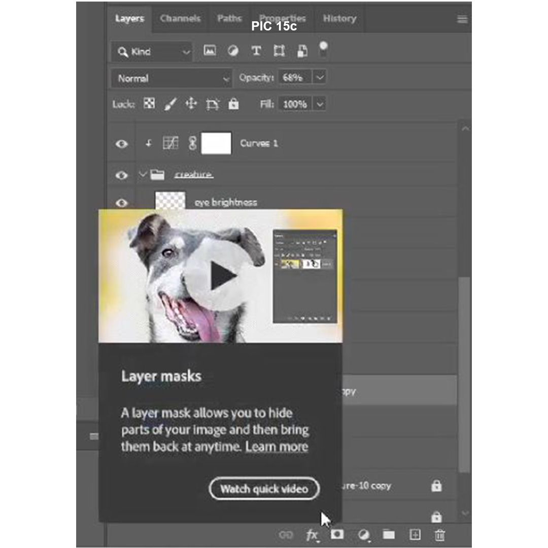 This will create a mask with the selection hopefully filled in black surrounded by white ref pic 15d)If not with the layer mask icon still selected press”Ctrl - I”.This will invert the selection.