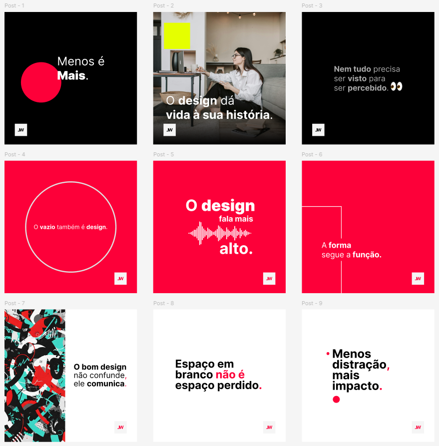 Assim ficou o meu projeto final do curso "Design gráfico para iniciantes". Depois de trabalhar com imagem, cor, tipografia e composição, criei designs para usar na conta do meu Instagram.