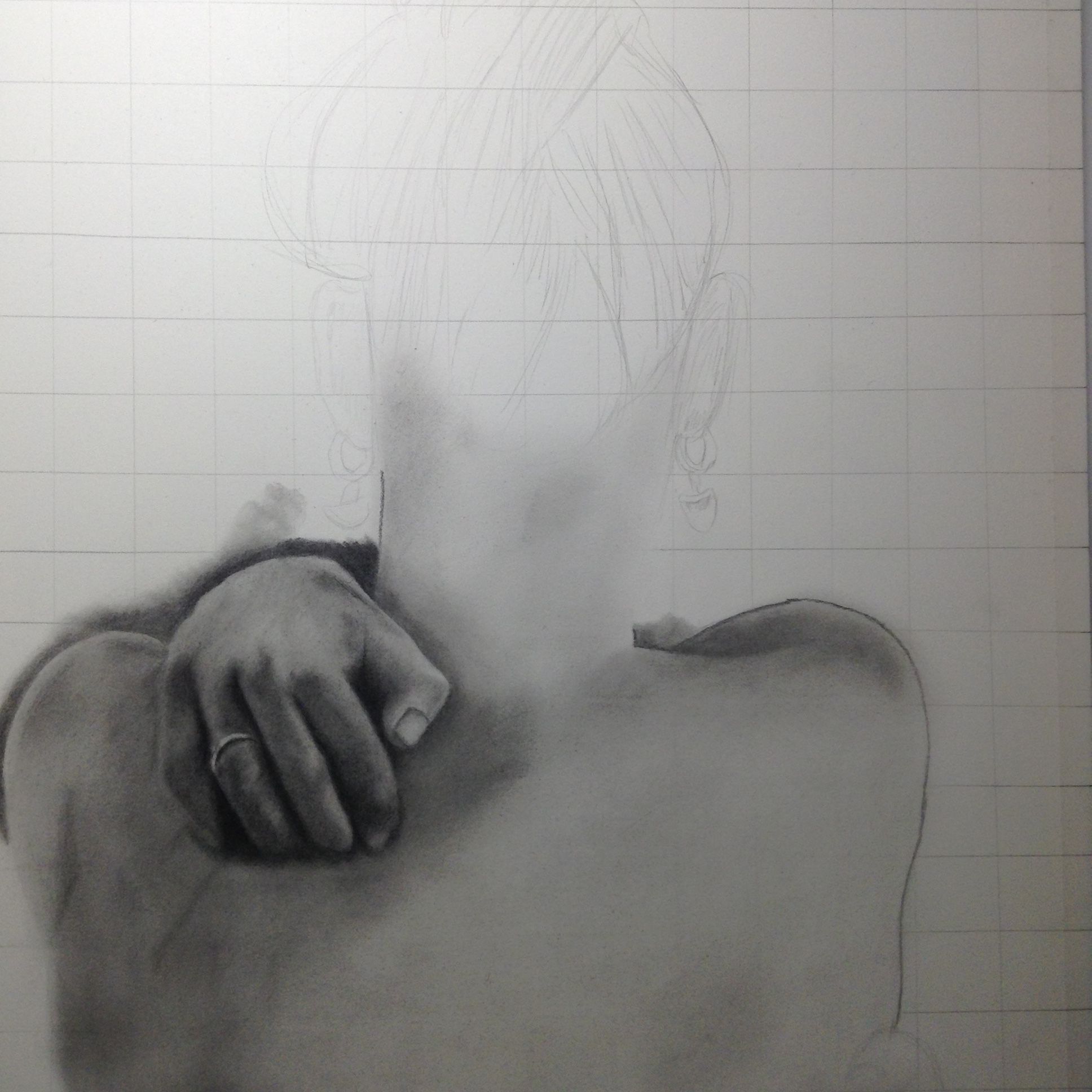 I started with the grid, did the outline, blocked in some of the dark areas, then worked on the shading and detail.