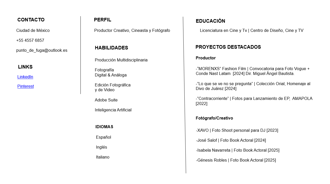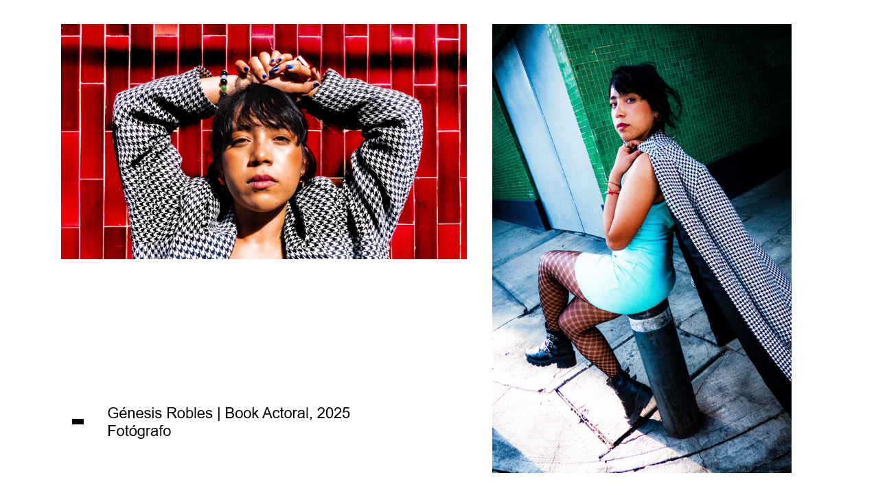 Incluí mi experiencia/ CV inmediatemente después de la portada y después los links a mis redes. Este book en específico es de un corte un poco más autoral, donde busco contactarme con clientes creativxs que busquen este estilo de foto.