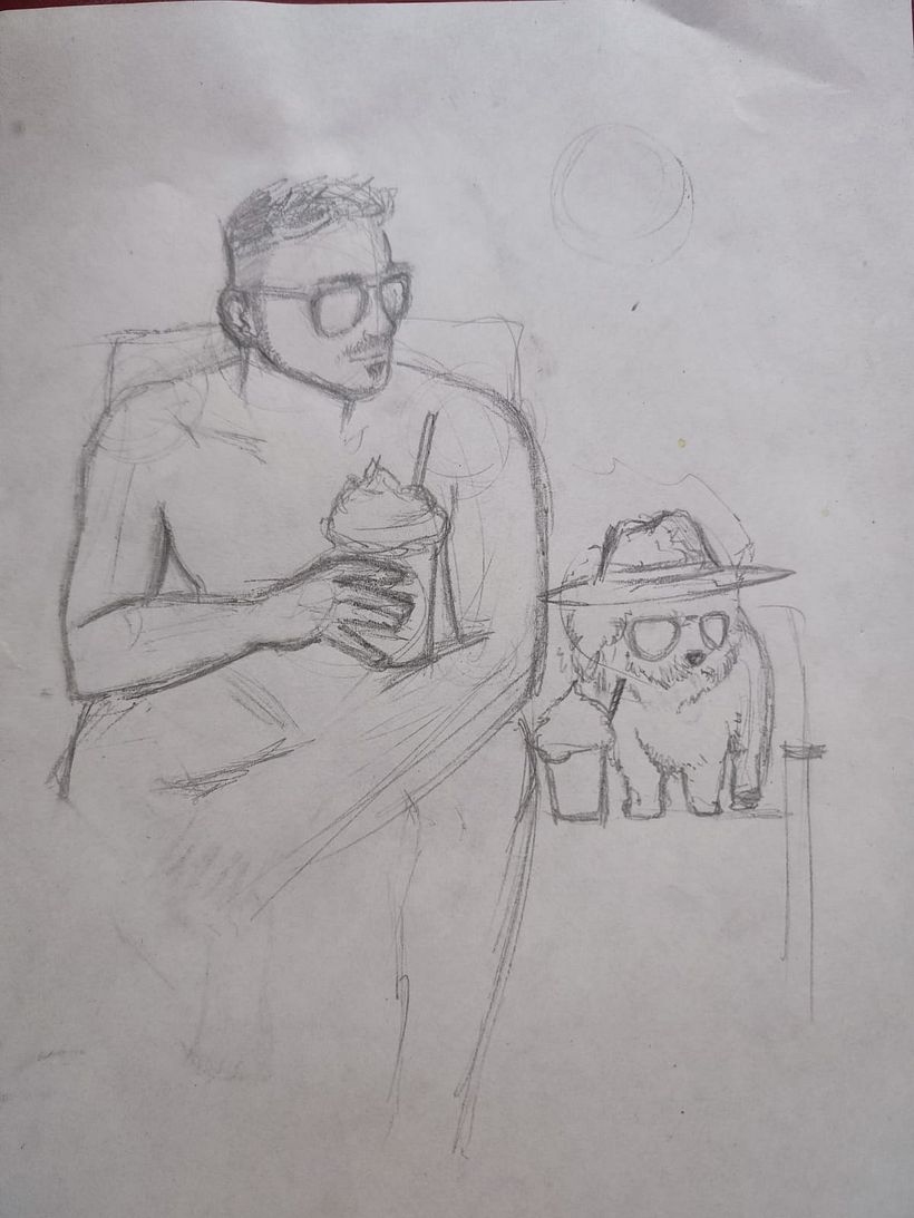Un amigo (Lucio) cumplió años este mes y le hice un retrato junto a su fiel compañera Caty <3. Lucio estuvo en momentos muy importantes en mi vida y se convirtió en una persona muy importante, acompañándome incondicionalmente a mí y a mi pareja.