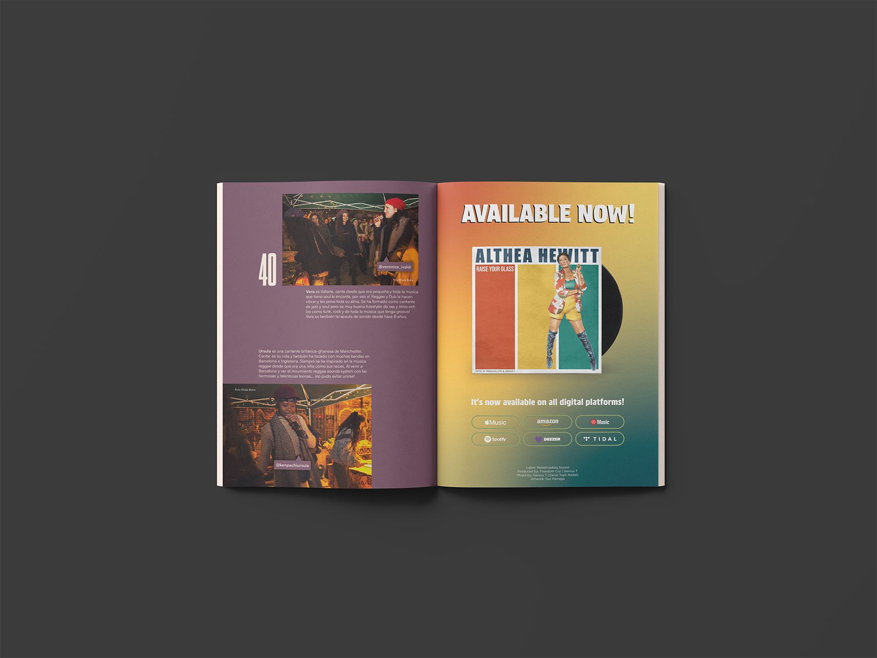 Todas las fotos que aparecen en este «proyecto» de revista han sido cedidas por fotógrafos que están directa o indirectamente relacionados con el mundo del sound system y por eso todas las fotos tienen el crédito en ellas como una forma de agradecimiento (Raúl Bleda, Enric Torrents, Joan Gil, Laia Buira y Maresme Roots Sound System. Y la ilustradora Sus Párraga y Martí Lutah por la portada de su nuevo single.)