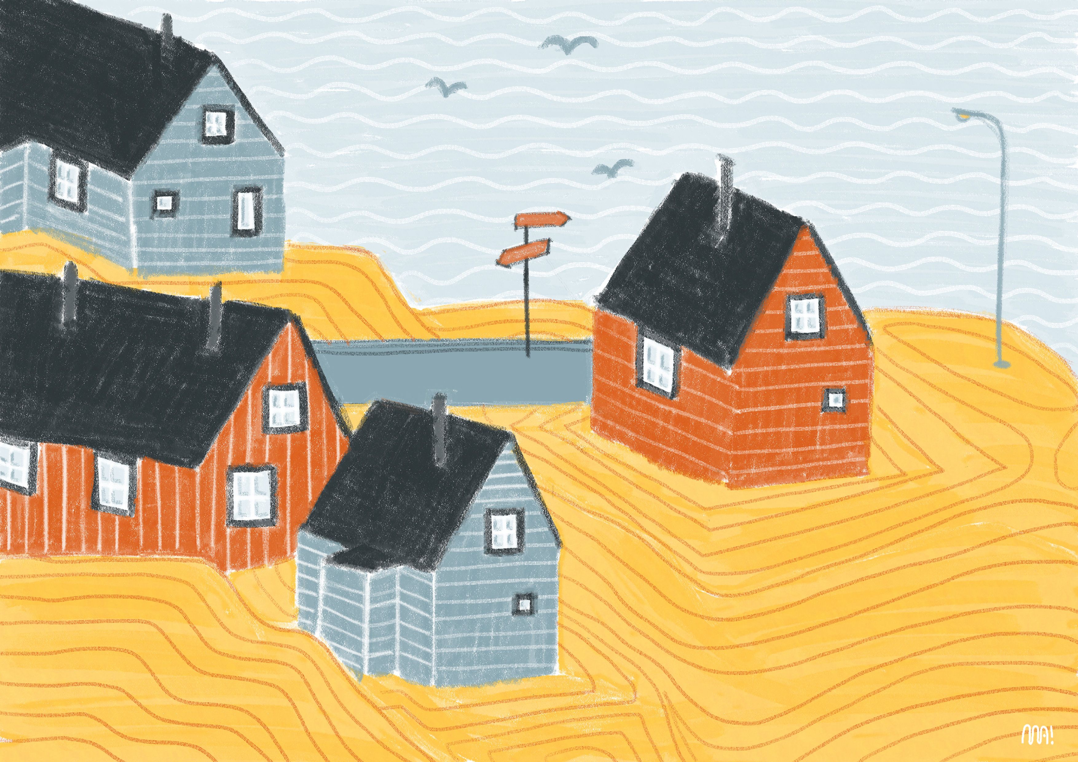 Ho scelto di rappresentare il villaggio di Uummannaq, un piccolo insediamento in Groenlandia. Mi ha colpito il contrasto tra le sue iconiche case colorate, e l'ambiente circostante, vasto e selvaggio. La mia illustrazione cerca di cogliere proprio questo dialogo tra l'architettura umana e il paesaggio naturale, trasformando un angolo remoto del mondo in una scena intima e quasi fiabesca. Un paesaggio urbano diverso dal solito.