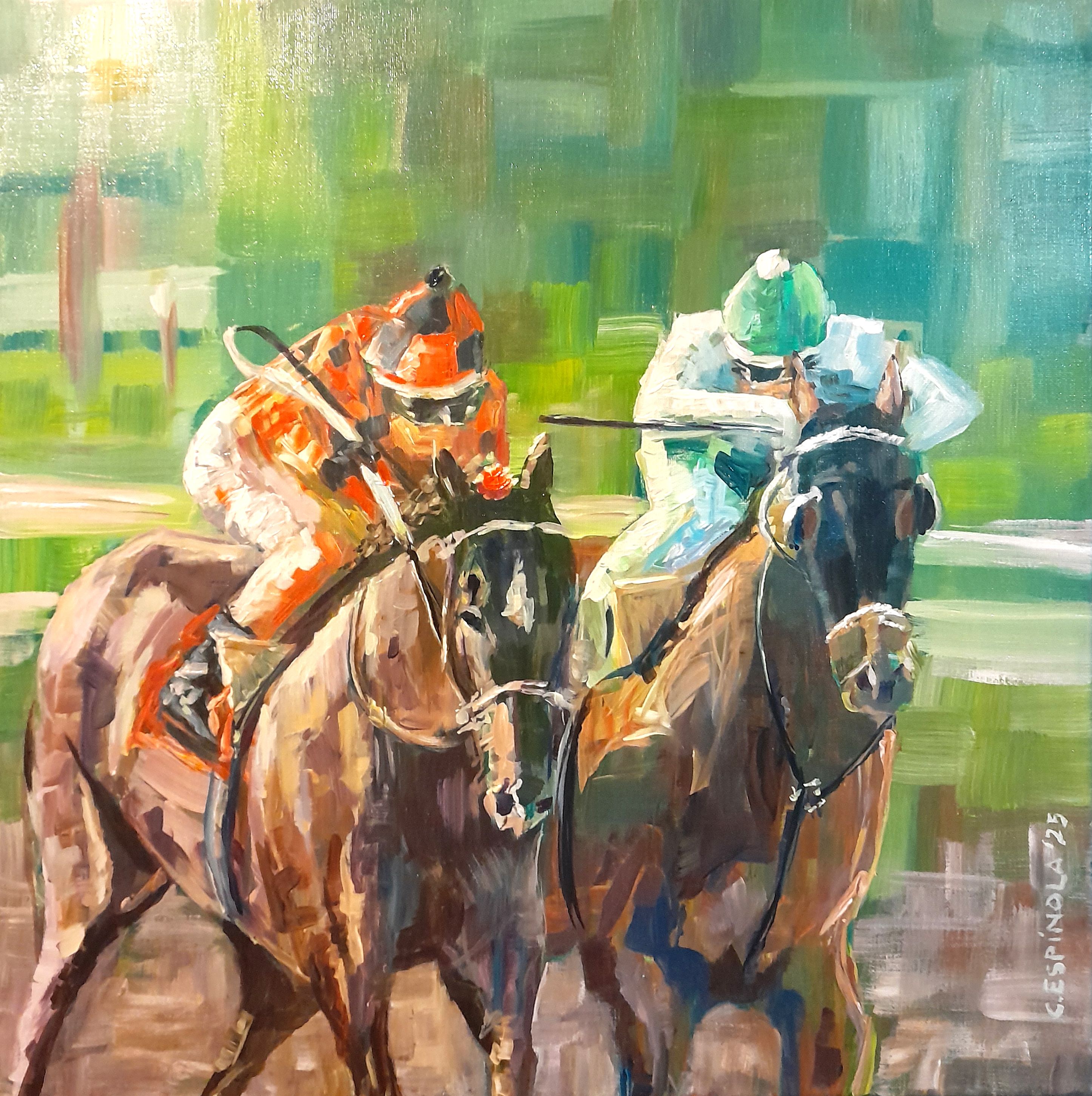 Segunda carrera. Es el segundo cuadro que realizo utilizando la técnica aprendida y sigo ahondando en el mundo de la hipica