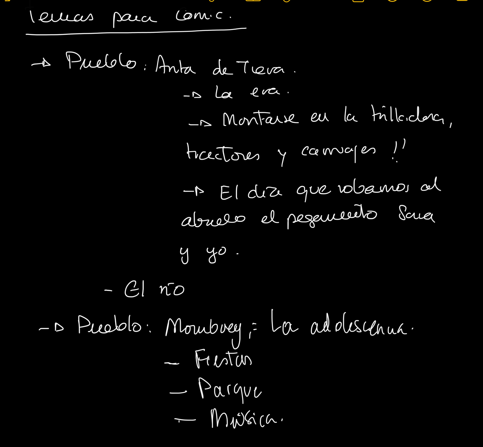 Ideas apuntadas en las notas del iPad: