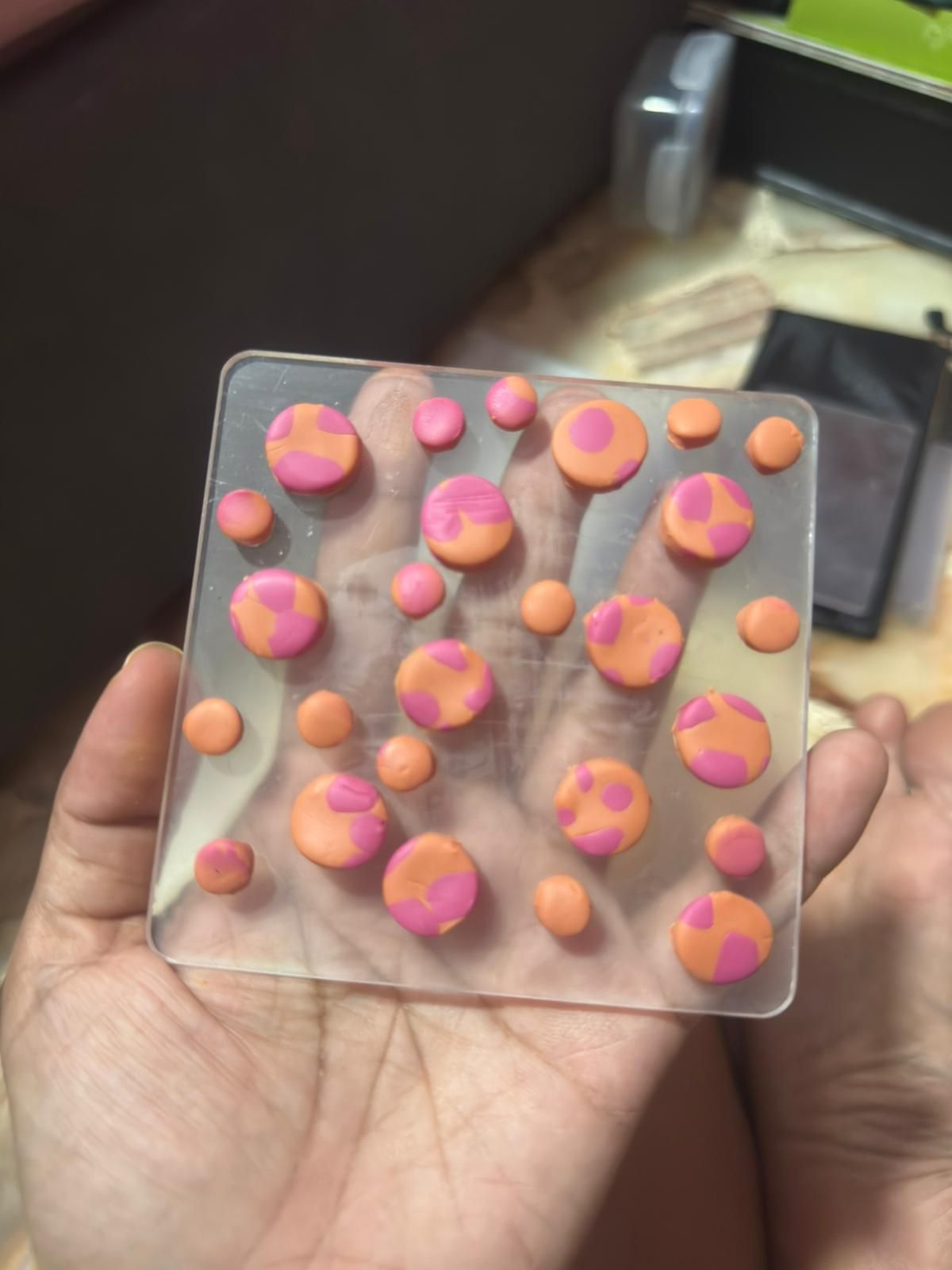 Need to bake this. I like how the mix of colors look and the different sized circles look right now.