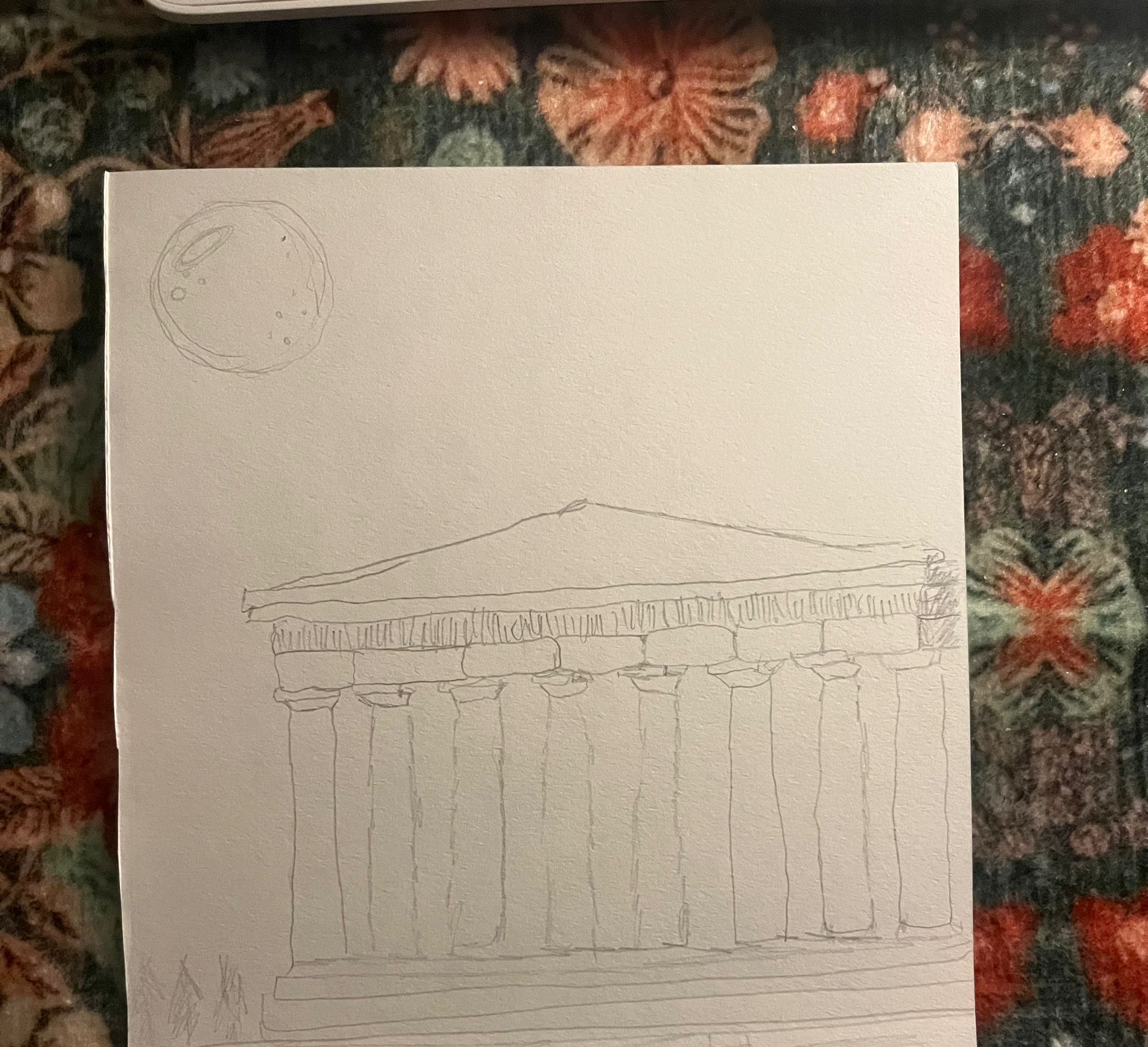 I painted the acropoli seen in a very clear night, imagining there would be no light polution in athens. It was supposed to be in honour of my friend. Here's my first draft and the inspiration picture I have used