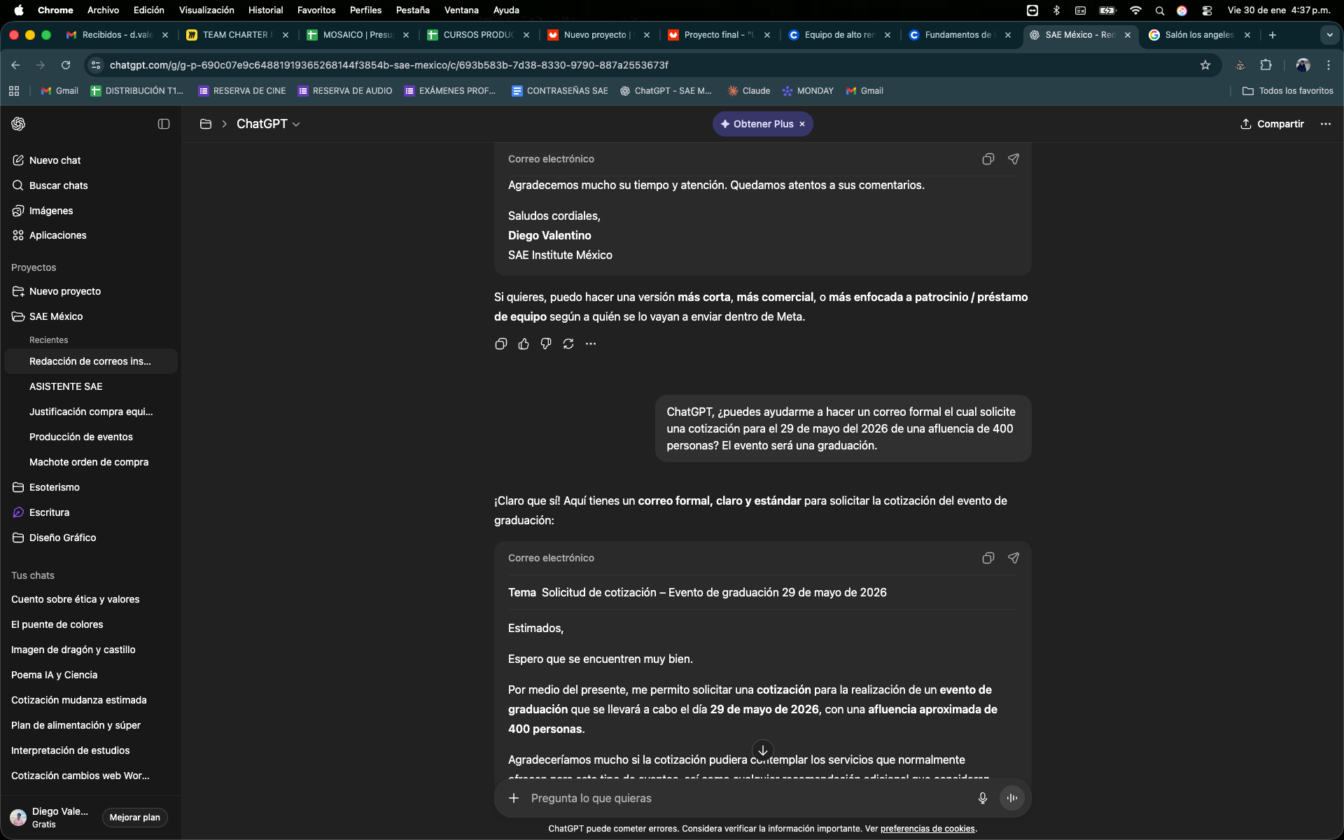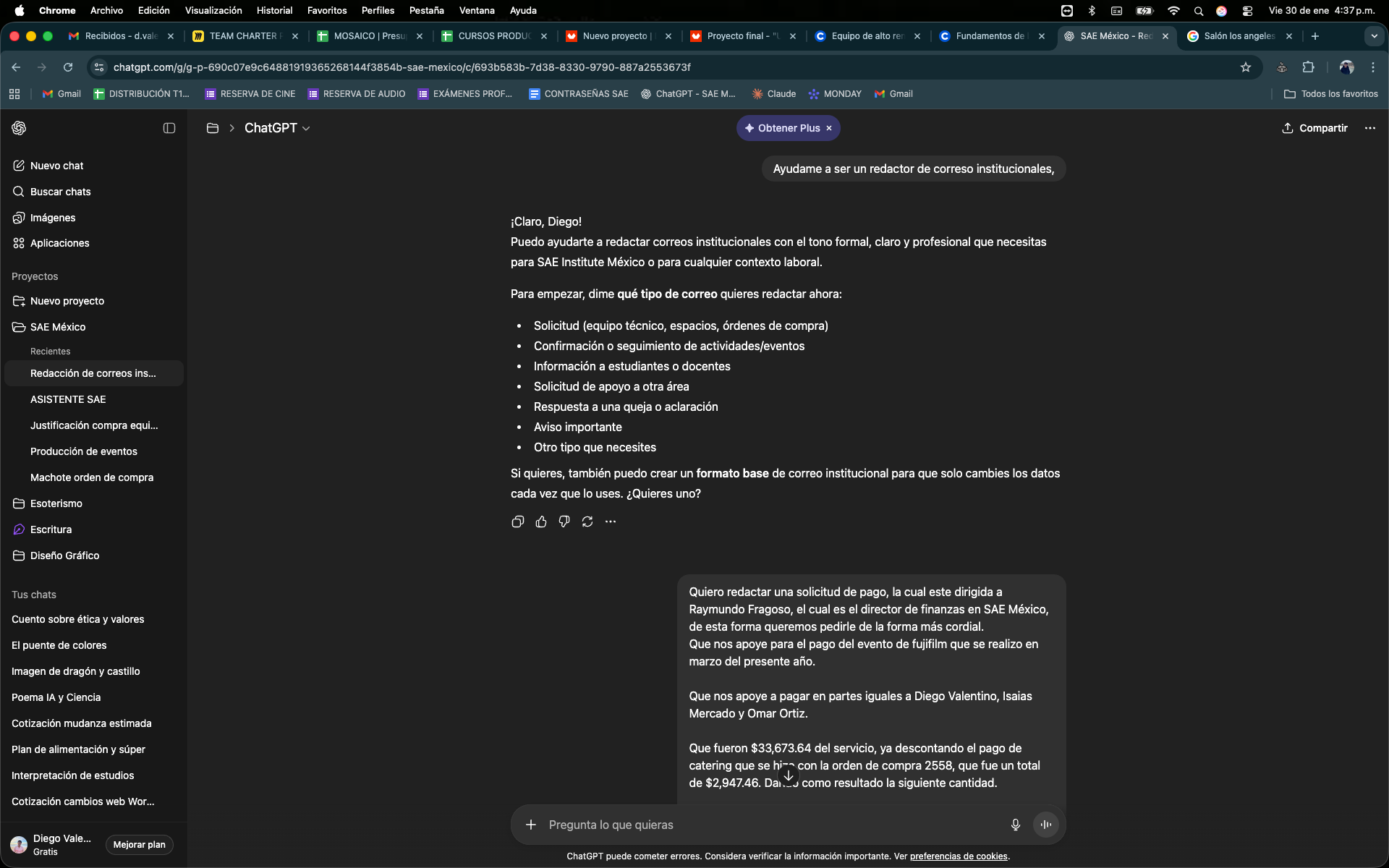 Un Pompt que me ayuda a realizar correos intitucionales