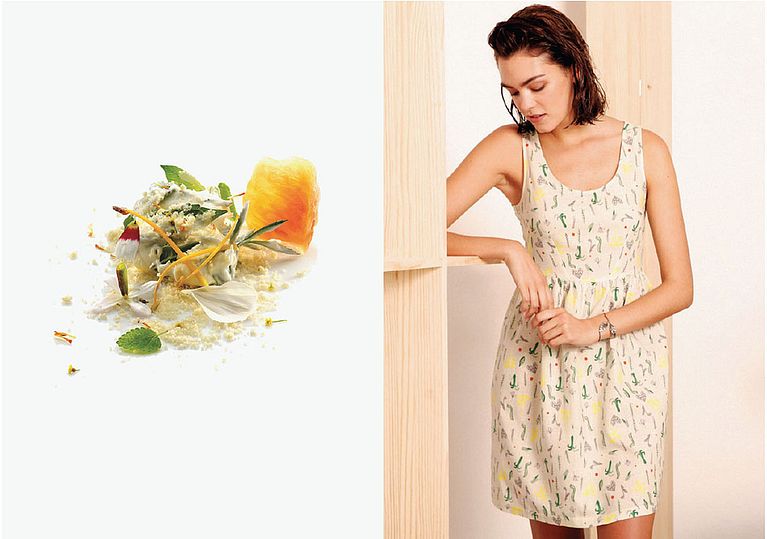 Watercolour based illustration and with a very extensive distribution to transmit the lightness of the dish and the base fabric.