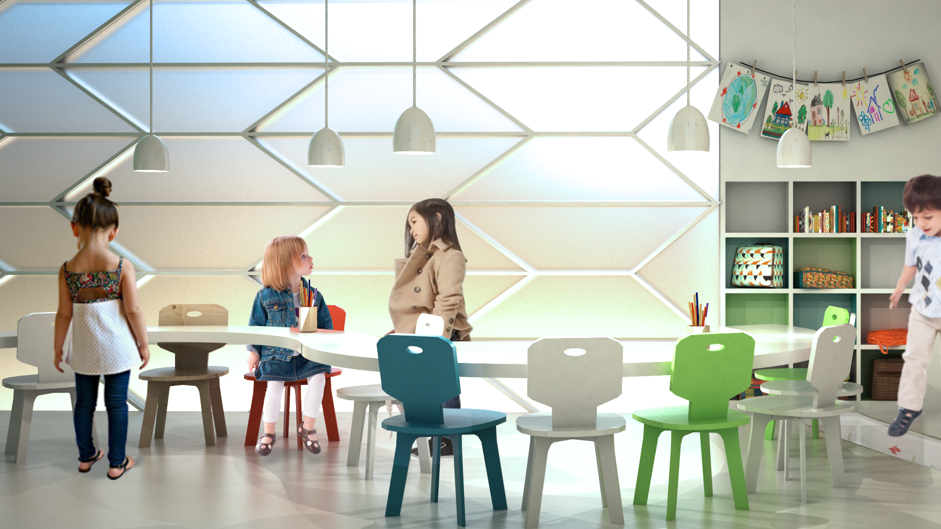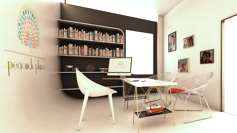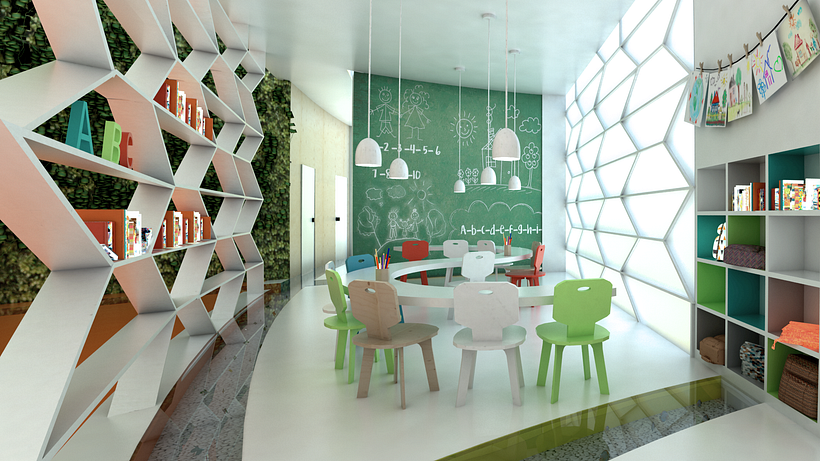 Peacock place. Un mundo lleno de aprendizaje , diversión , armonía y seguridad . Diseñada por bloques separados por una pecera a nivel del suelo que pauta el recorrido de cada area . Amarillo: Area de aprendizaje, Estimula la concentracion y actividad mental . Naranja: Area de juegos, estimula la energía y la alegría . Azul : Area de descanso, estimula la paz y el sueño. Este lugar consta de dos plantas , la segunda planta (comedor, oficina, deposito) tiene completa visibilidad hacia el area de guarderia debido a sus aberturas en cada área , permitiendo la una constante vigilancia de parte del personal a cargo.