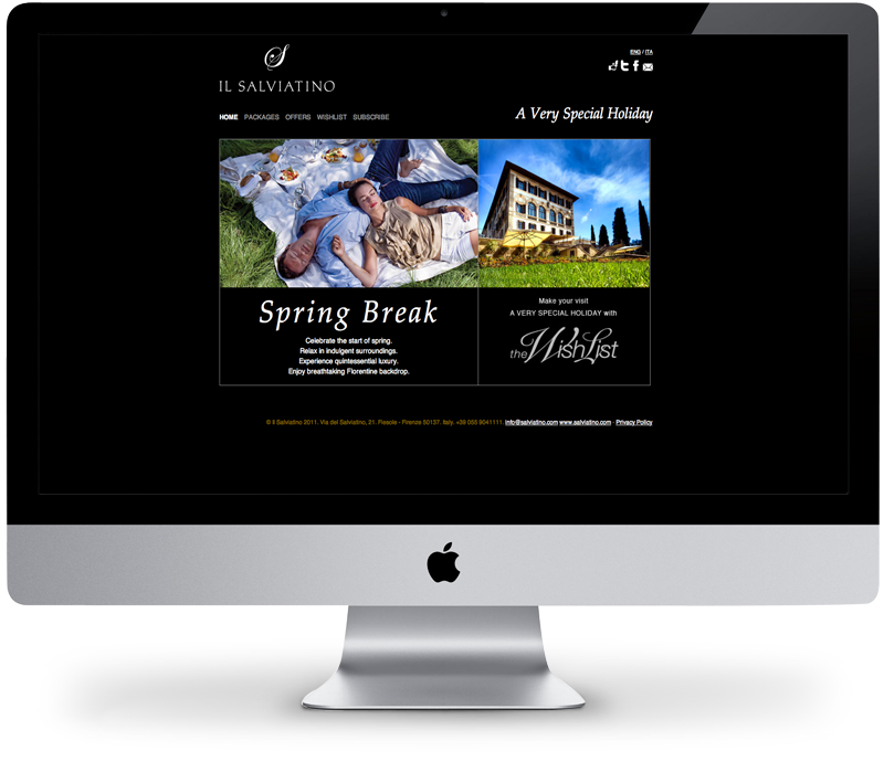 La idea era generar más tráfico hacia la web de ilSalviatino e informar de las posibilidades que el hotel ofrece a sus clientes. El proyecto y el diseño me vino de la mano de Cristin Folgueira.