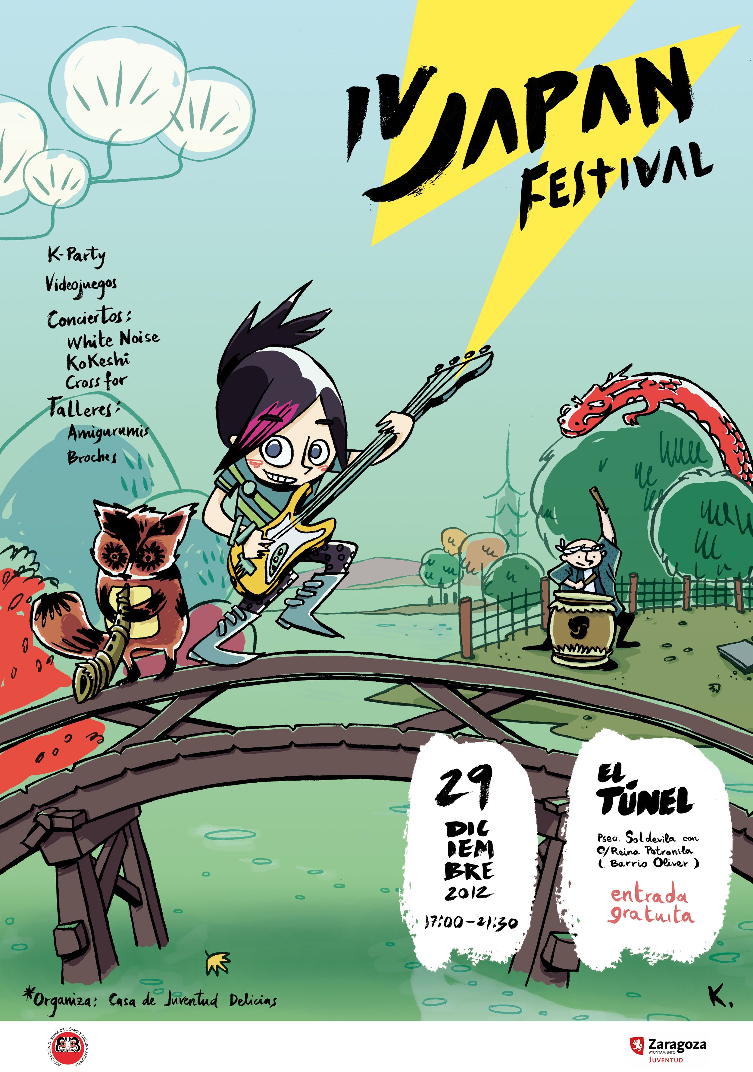 Evolución de la carteleria del evento de música japonesa y coreana "Japan Festival", organizado por las casas de juventud de los barrios de Delicias y Oliver en Zaragoza.