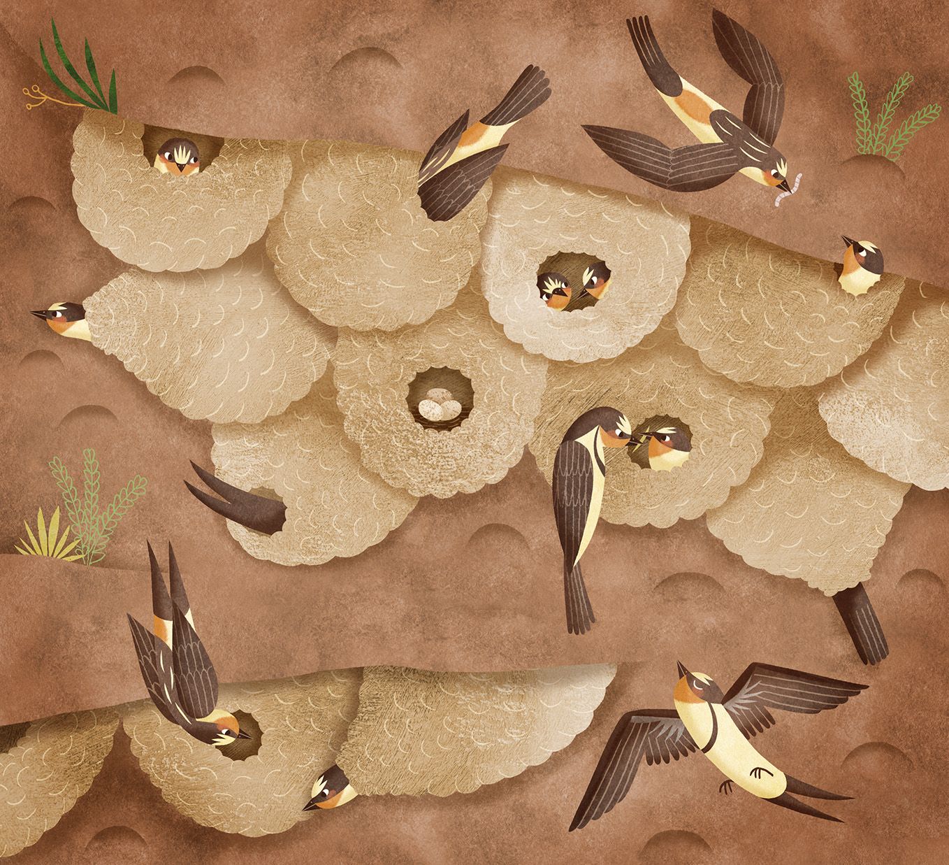 • El nido de las cigüeñas. Ilustração editorial, Ilustração tradicional e Ilustração infantil projeto de Romina Martí - 11.10.2018