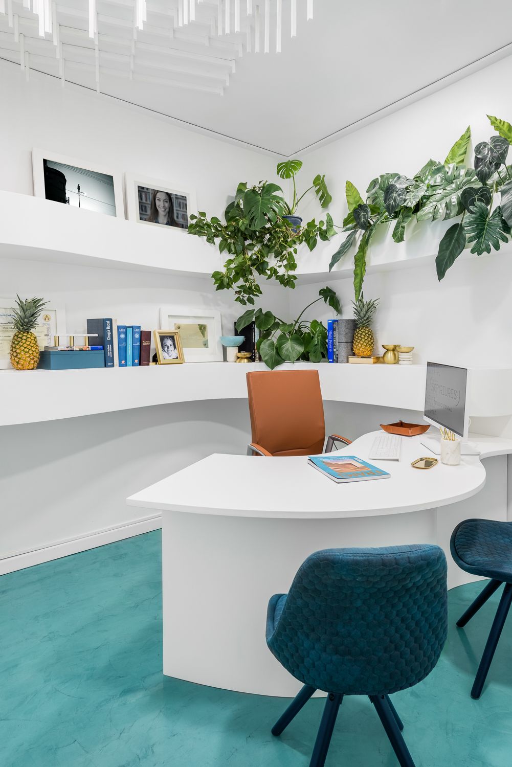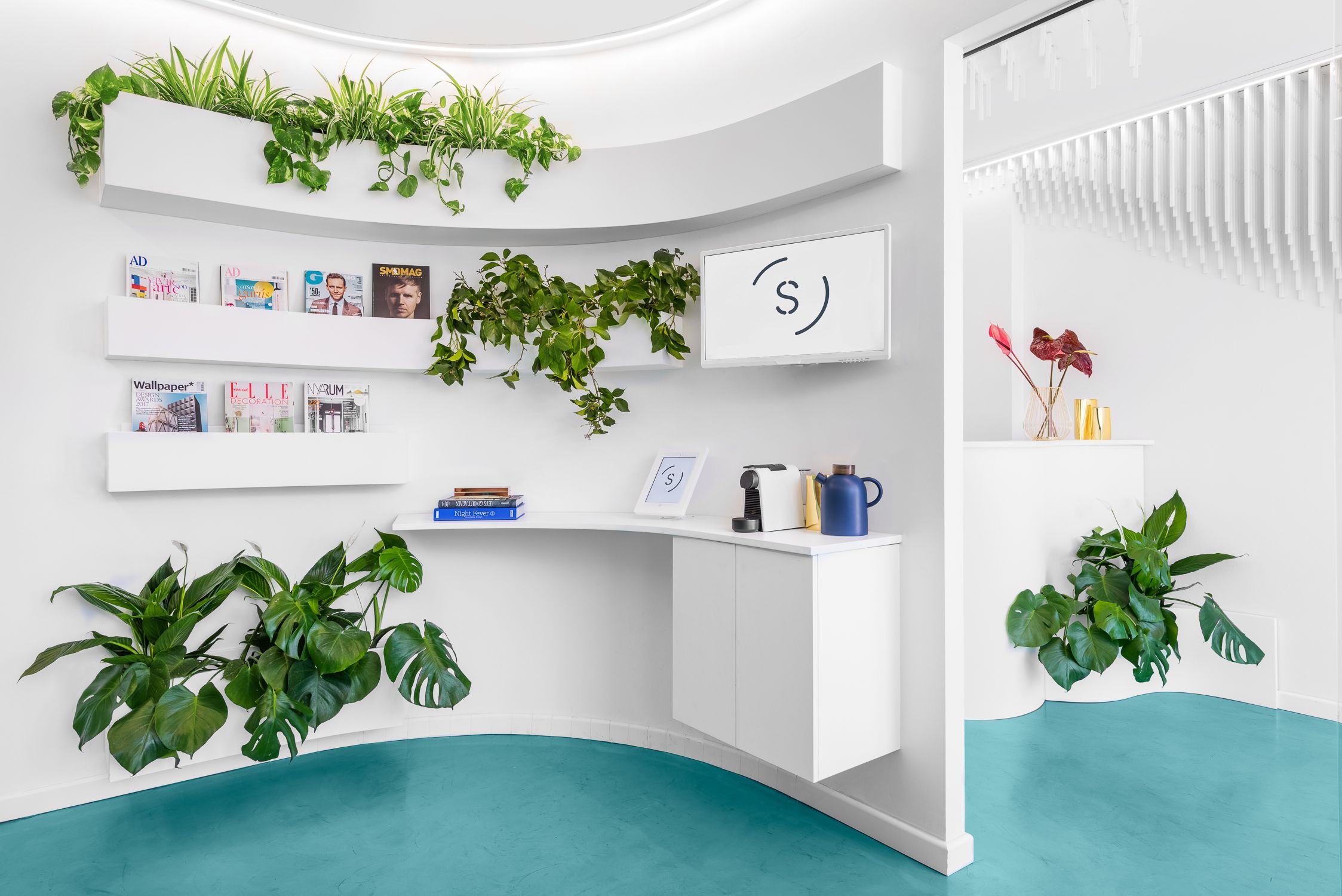 Como a Somriures é especializada em criar "belos sorrisos", o design do consultório odontológico apresenta uma escultura feita de 2.884 ripas de madeira que pendem do teto e também são colocadas em algumas paredes para recriar um sorriso. A escultura também funciona como um guia, conduzindo o cliente de um canto a outro do espaço. Cores suaves também foram escolhidas, incluindo turquesa e branco, com toques de dourado, couro marrom e azul-escuro para criar um contraste sofisticado. Além disso, formas orgânicas foram utilizadas em diversos móveis feitos sob medida, em perfeita sintonia com o conceito de um belo sorriso.