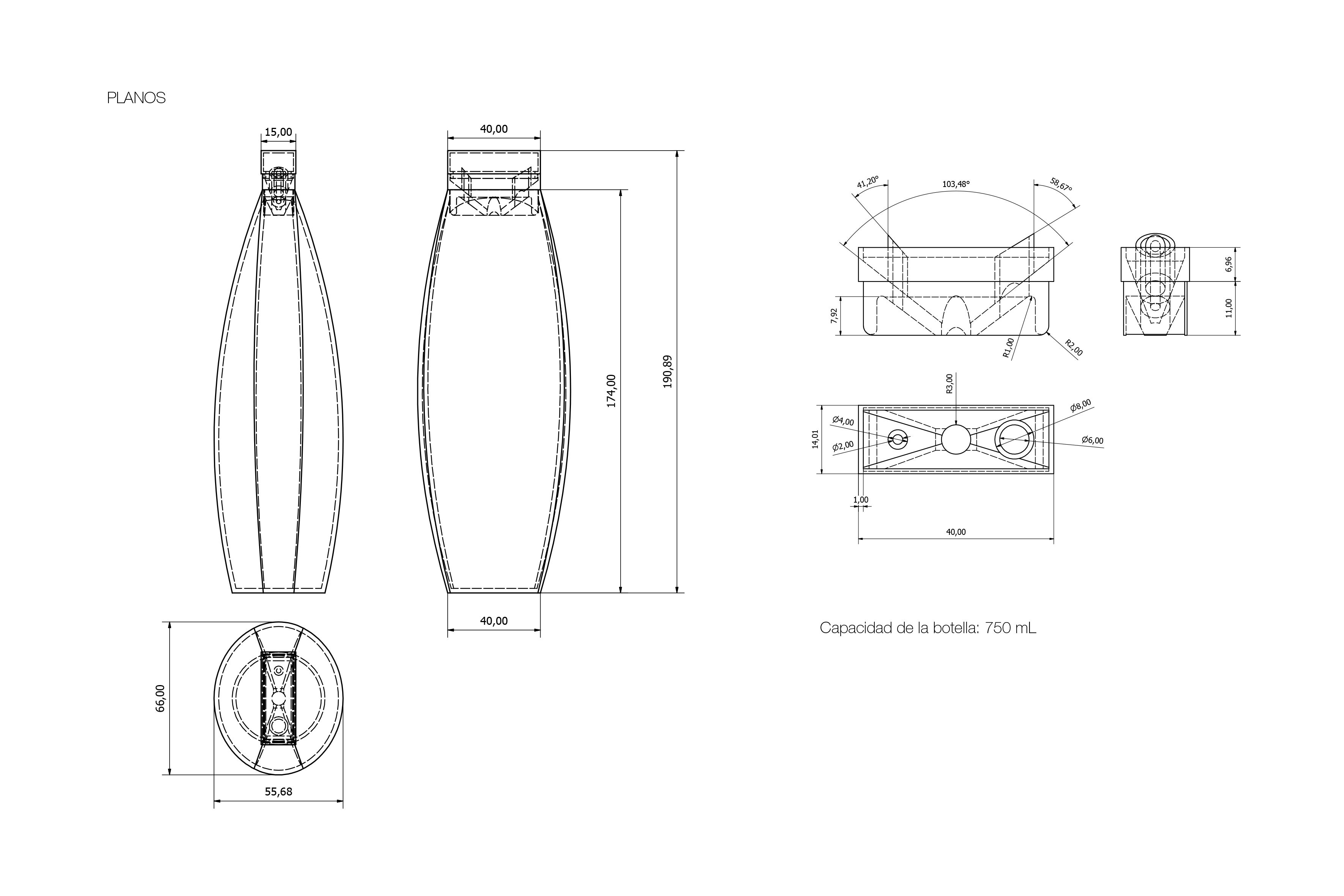 Modelado 3D del recipiente, tapa y dispensador.