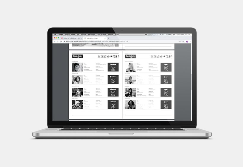 Publicación de la Guía Wild Girls para la marca de accesorios y complementos de moda Wild Turtle. Publicación en la que se agrupan colaboradoras y embajadoras de la marca con la finalidad de ofrecer a la comunidad de seguidores de la marca información detallada sobre sus colaboradoras.