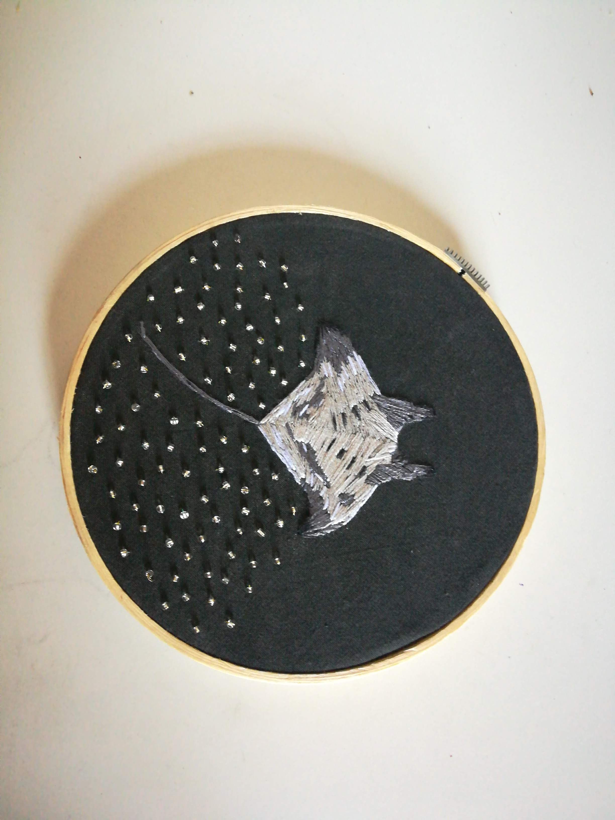 Esta es una mantarraya nadando con bioluminiscencia. Este fenómeno es real y se puede ver en el primer capítulo de Blue Planet 2. Pero antes de saber que existía fue visualizado en un sueño.