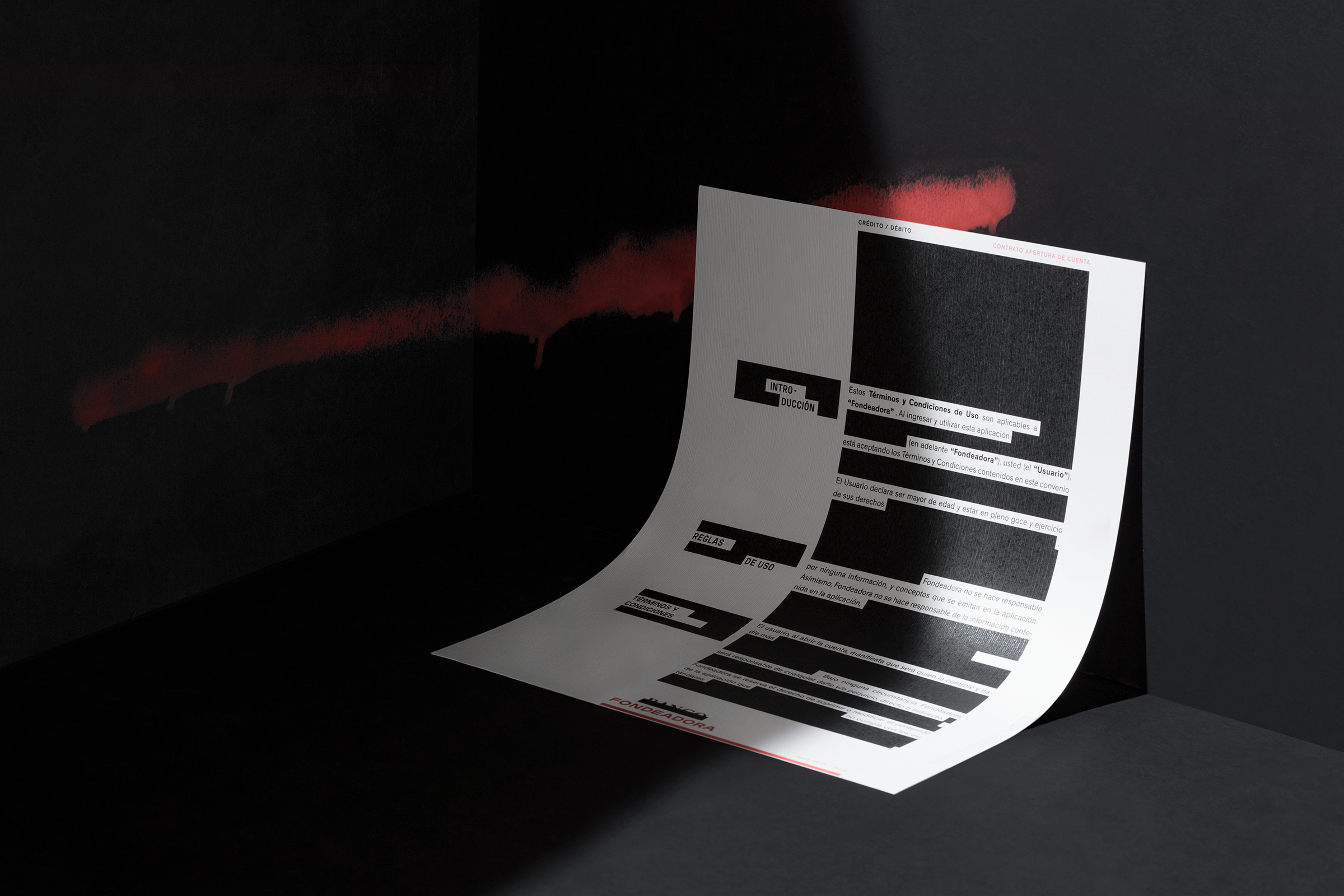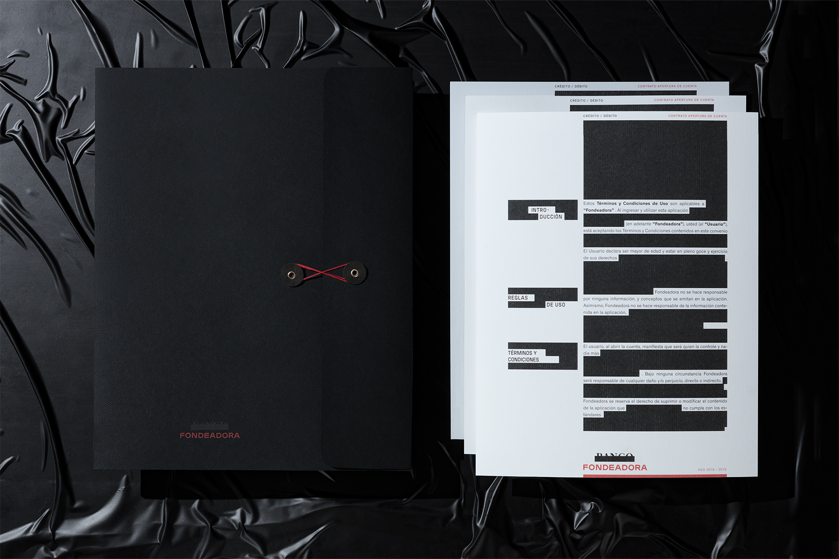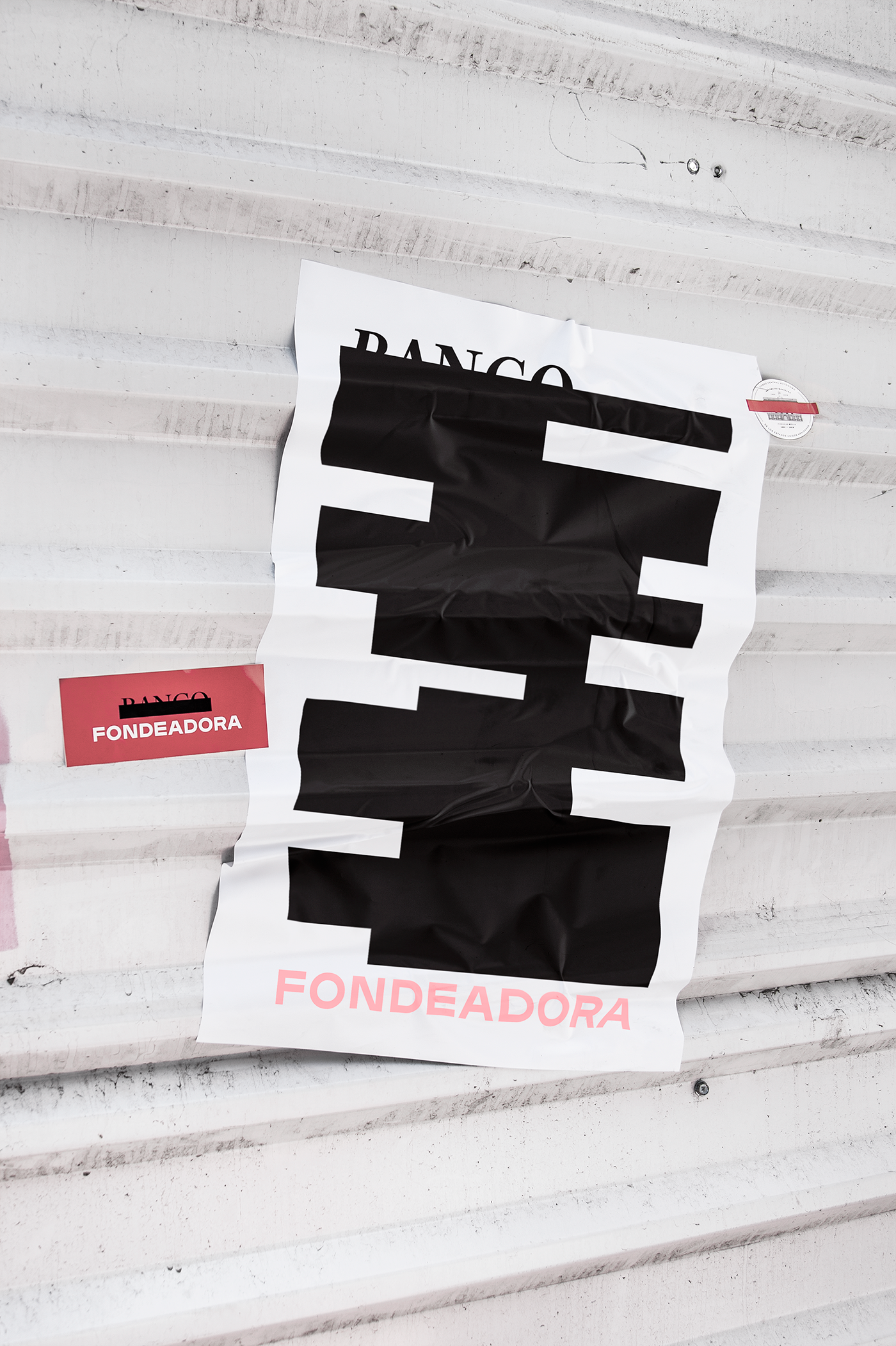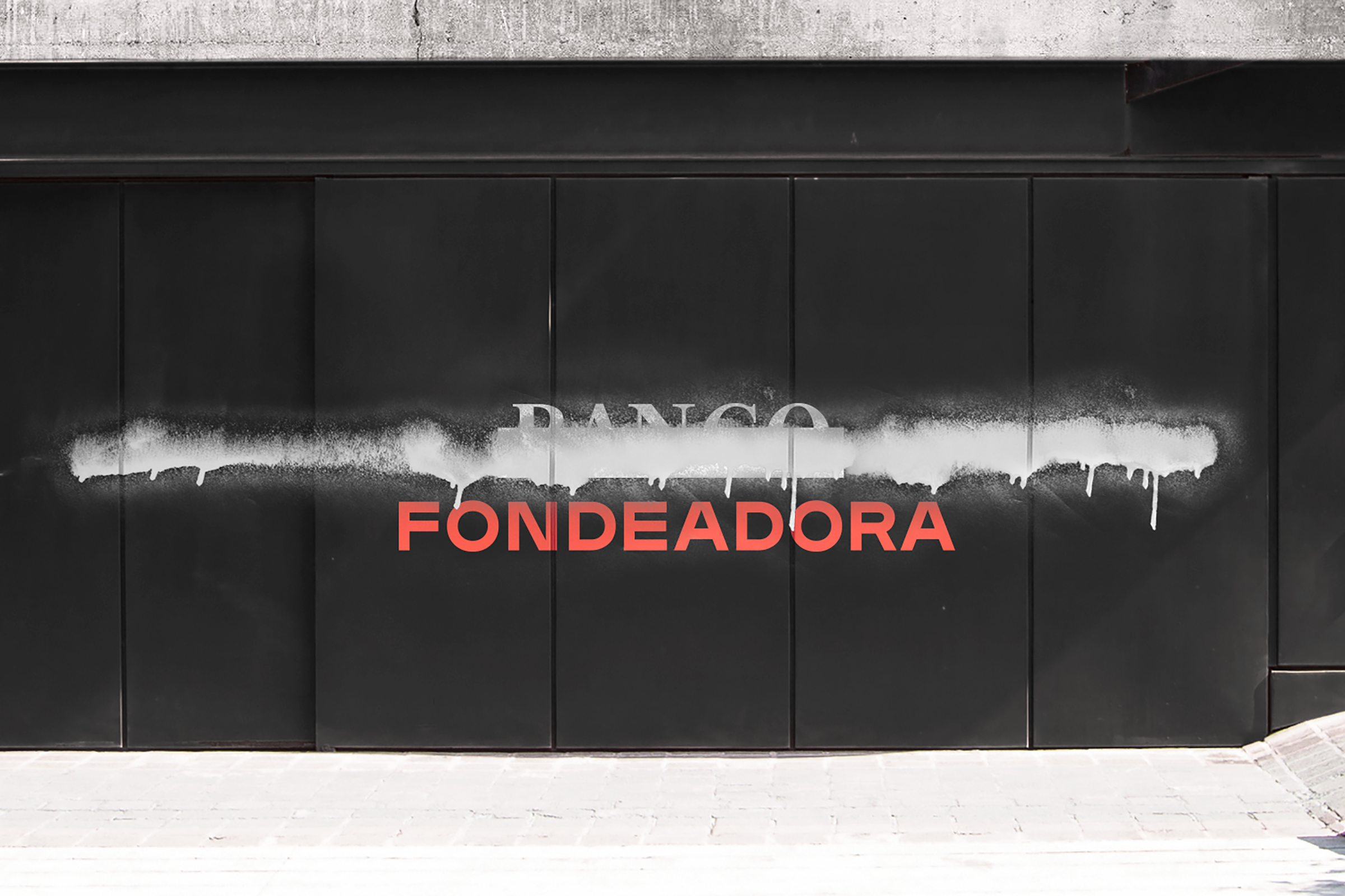 We designed a logo that represents all of the above: the mix between established and rupturism. The intervention crossed out in part of the logo is a nod to the rebellion against the system, seeks complicity in the typographic selection of Fondeadora. The icon represents the aesthetics of banking institutions, intervened with a black strip, to generate empathy with people that are looking for a change. The typesetting seeks to cover the more informal part of the brand, but combined with a more traditional source to generate confidence.
