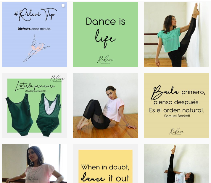 Relevé es una tienda online de ropa y artículos para bailarinas de 12 a 25 años. Su principal ventaja competitiva se encuentra en la región (se hacen entregas directas en las academias de danza) pues no existe una competencia directa de manera física. Al ser una tienda online me he estado enfocando en tener una fuerte presencia en las redes, principalmente en Instagram pues es la red en donde se encuentra mi principal nicho de mercado.