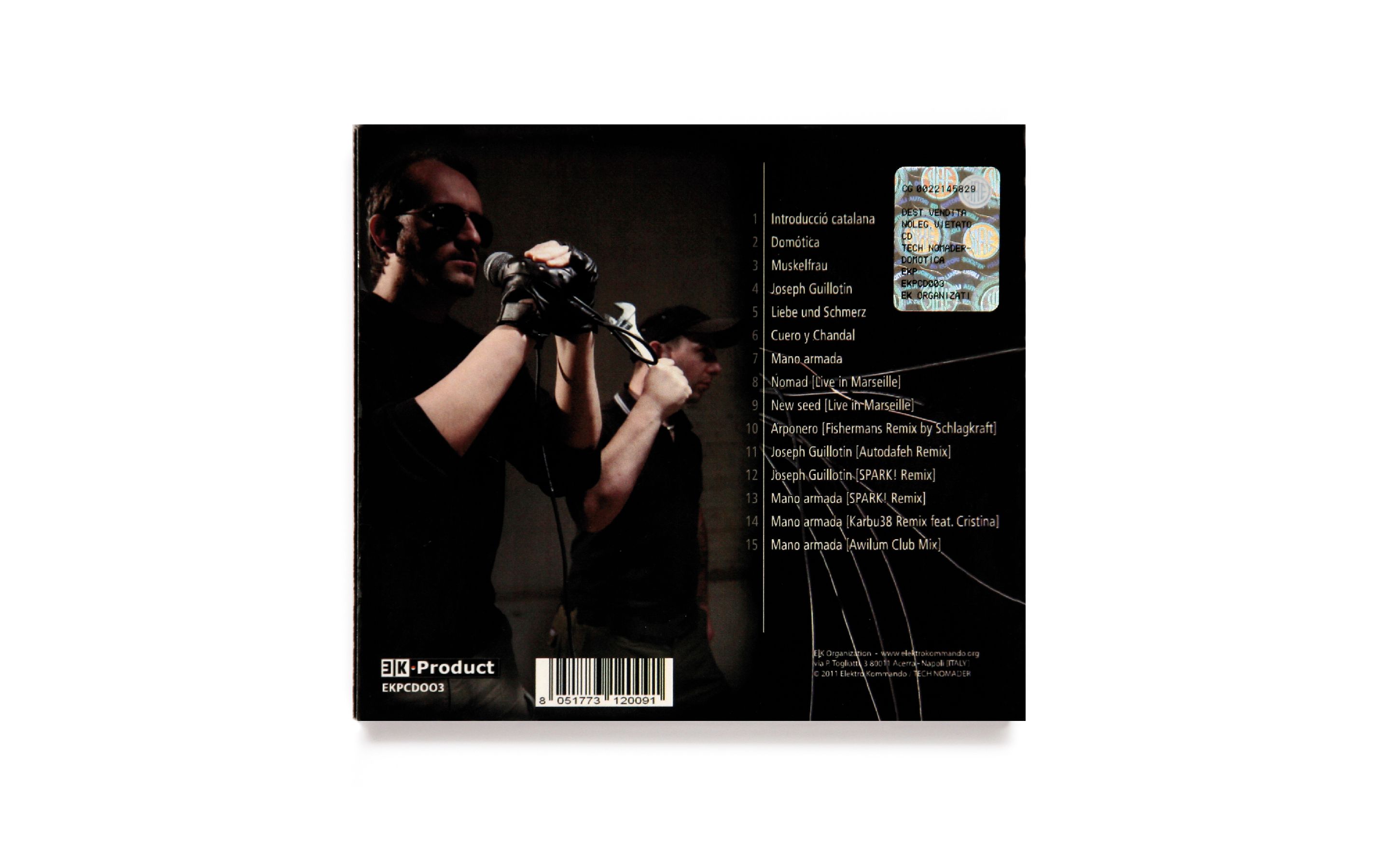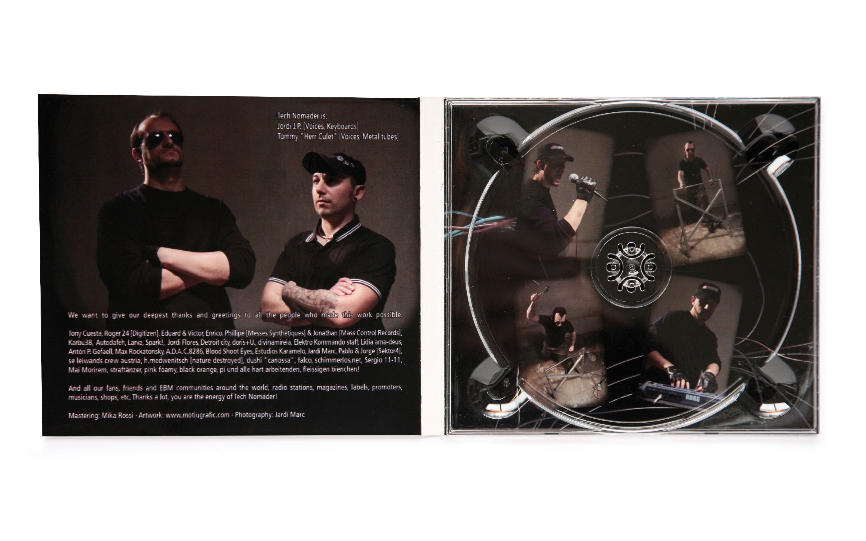 Diseño de cubierta, libreto y CD para la banda de música E.B.M. (Electronic Body Music) de Barcelona, Tech-Nomader y la discográfica italiana EK Product.