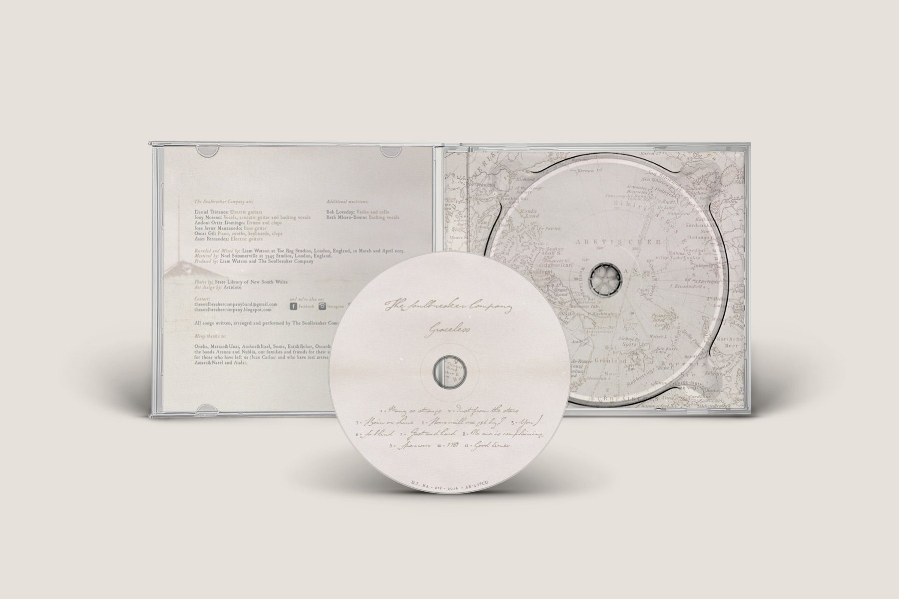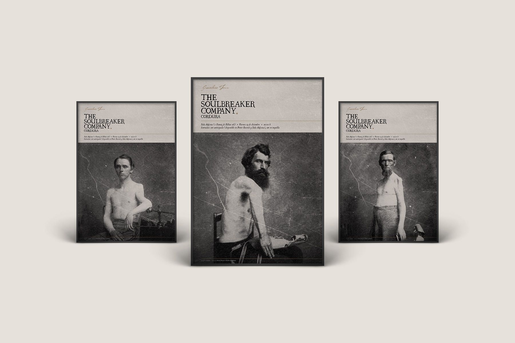 Allá por 2014 la banda vitoriana de rock The Soulbreaker Company publicó su discazo Graceless. En el briefing se especificaba la preferencia por un estilo gráfico que recordase conceptualmente al título del disco. Que todo fuese un poco sucio, desgastado, con imperfecciones, sudoroso y que estuviese en concordancia con el sonido más crudo y sucio del propio disco. Este es un ejemplo de como quedó todo el diseño del material asociado al lanzamiento: disco en formato vinilo y CD, camisetas y carteles.