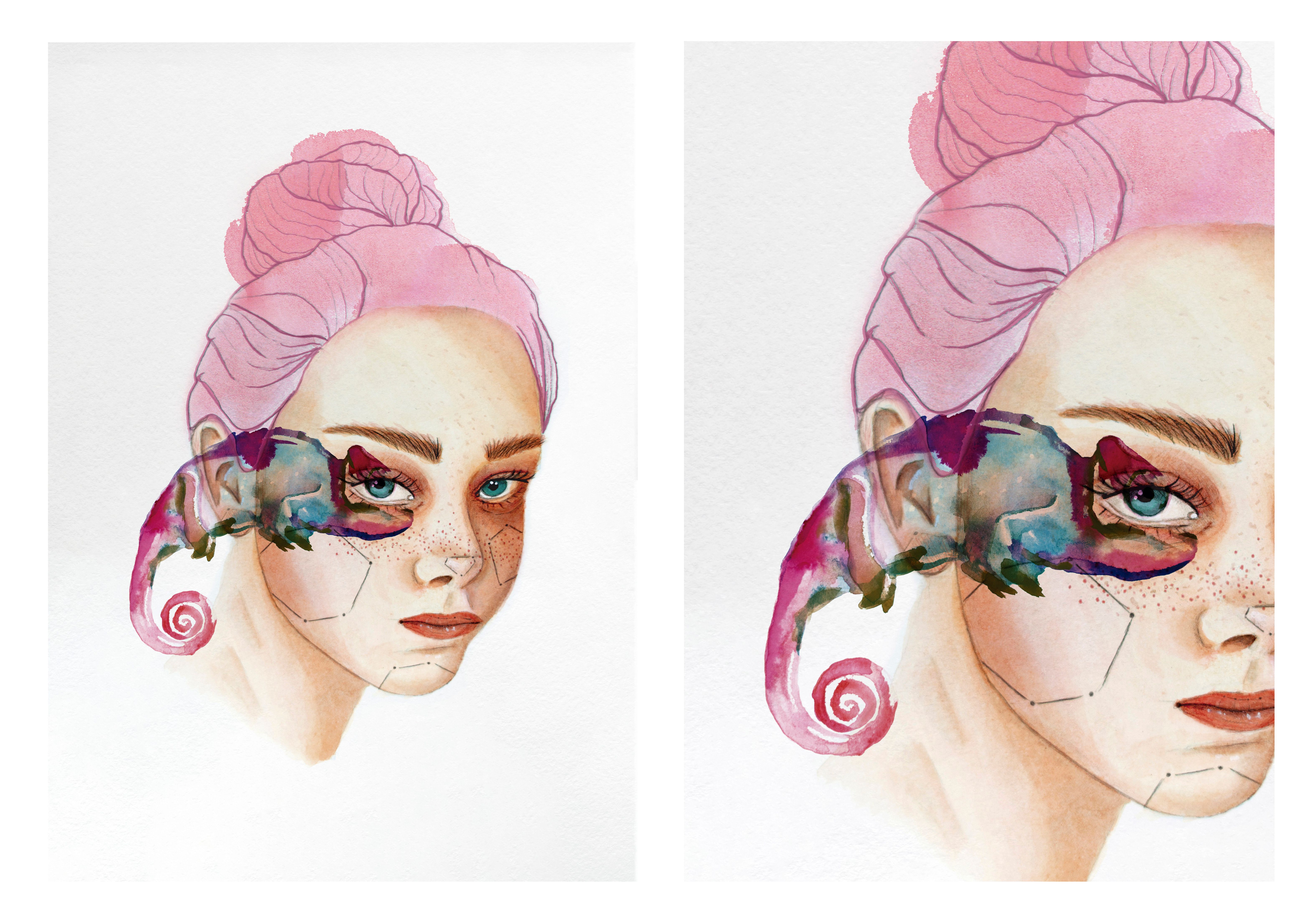Llevo algo menos de un año pintando con acuarela aunque con muchas pausas. Quería probar a hacer algo fuera de mi zona de confort con este curso y estoy muy contenta! He aprendido muchísimo, tanto que decidí comprar el otro curso de Ana Santos de técnicas de acuarela para animales y he aprovechado dos de las ilustraciones de ese curso para los protagonistas de este retrato.