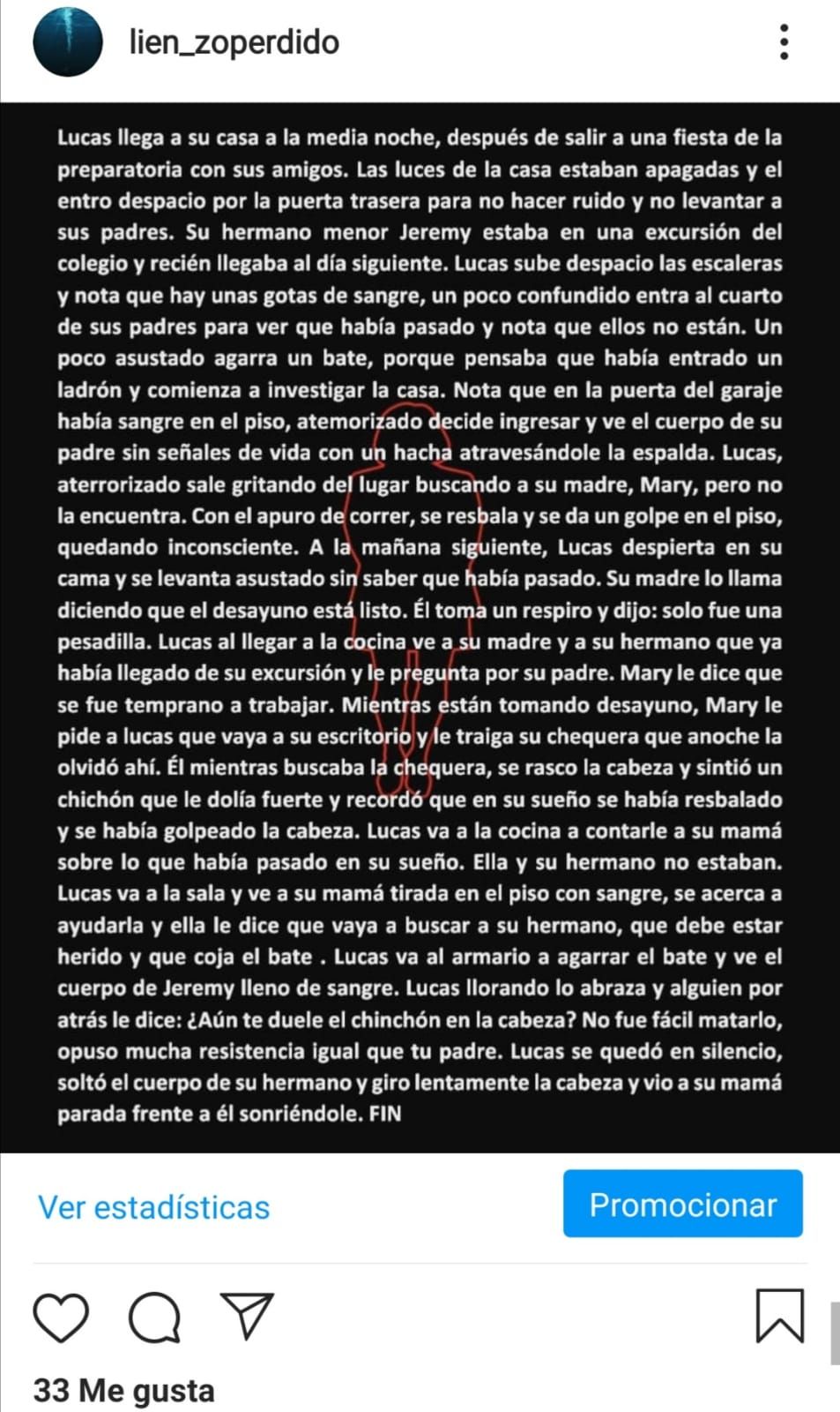 Lienzo perdido es una página, que nació de un sentimiento que tenía por plasmar historias de fantasía, terror, suspenso, romance, entre más. La misión de este proyecto era crear un buen contenido para el lector y mejorar cada día como escritor. La visión era que los lectores puedan compartir las historias con sus amigos o familiares y que ellos se animen a leerlas. He decidido tomarme un tiempo y dejar de escribir, necesito nuevas experiencias y seguir puliendo mis habilidades, para que algún día vuelva a reactivar la página y hacer lo que más me gusta, escribir.
