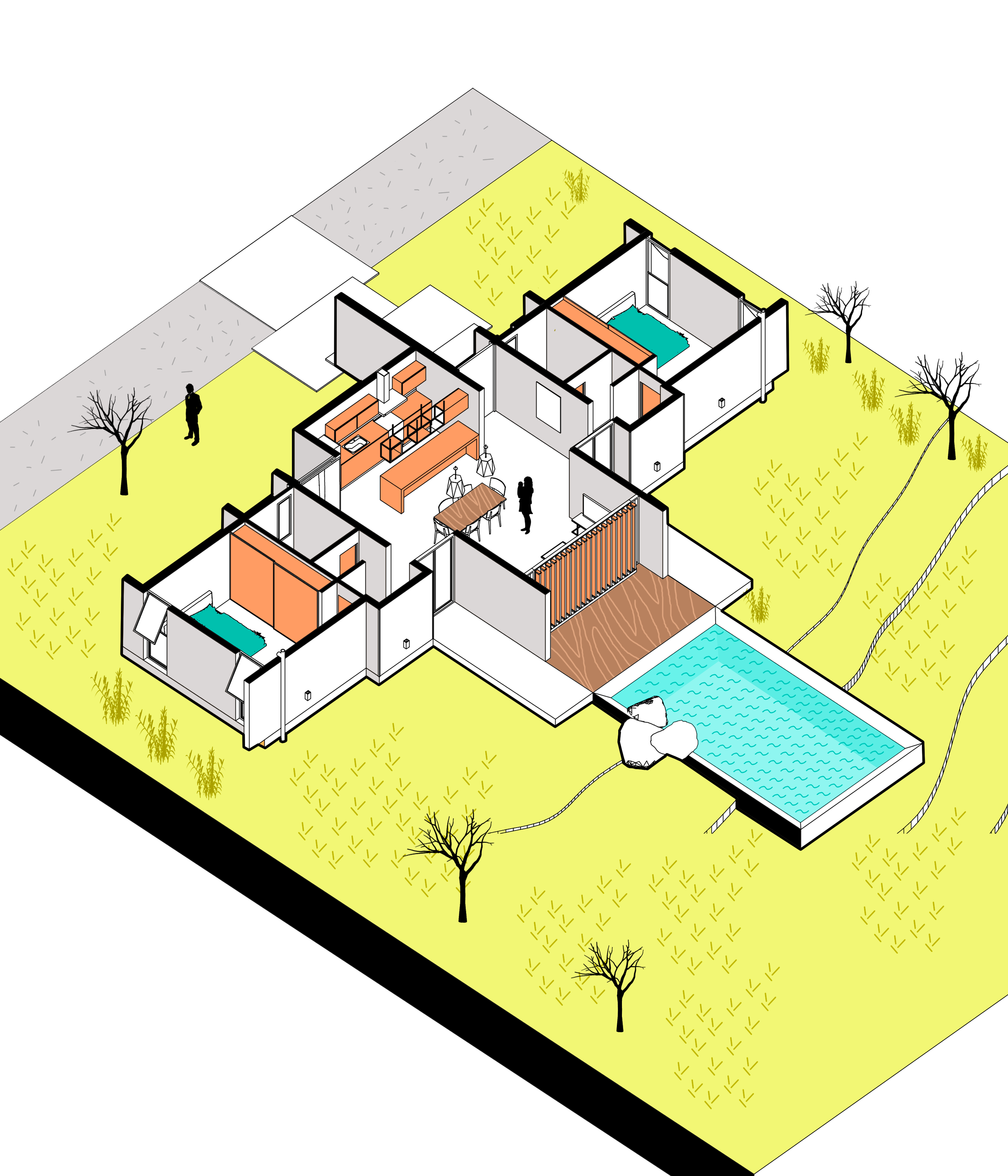 Muito bom projeto uma pergunta onde você localiza o banheiro para quem usa a piscina e a lavanderia, máquina de lavar, secadora? obrigado, estou apenas em um projeto real e acho que esses são alguns pontos a resolver!