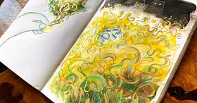 Domine as linhas, os espaços e as cores da tinta guache para ilustrar uma cena bucólica
