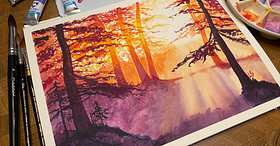 Represente a beleza da natureza com ilustrações em aquarela explorando a teoria da cor e o uso de camadas, composições e texturas