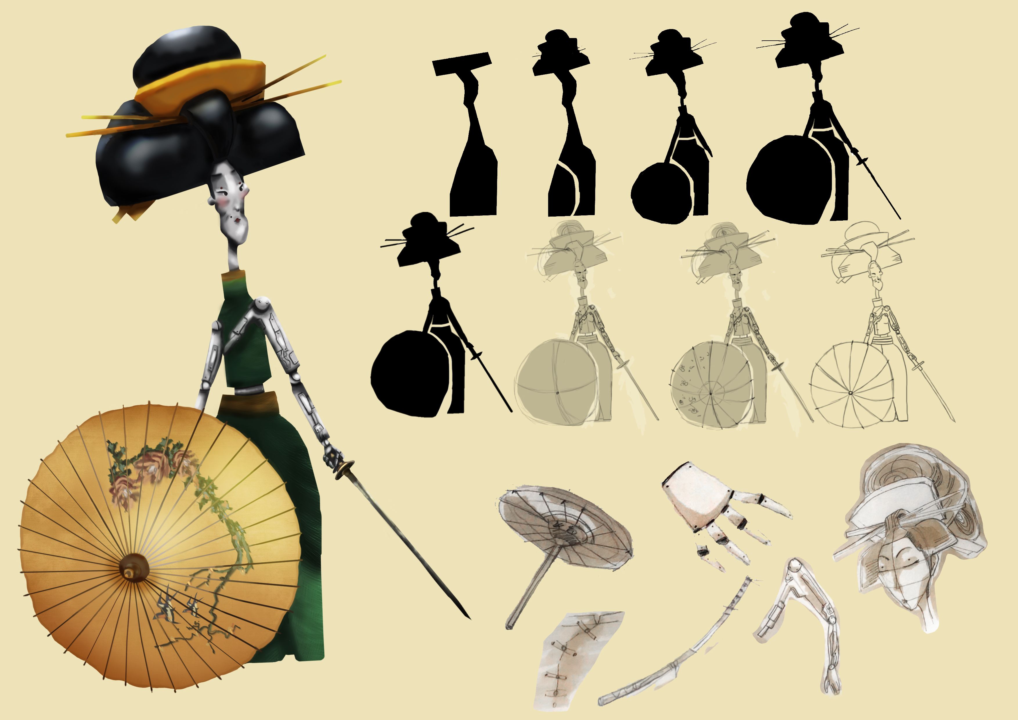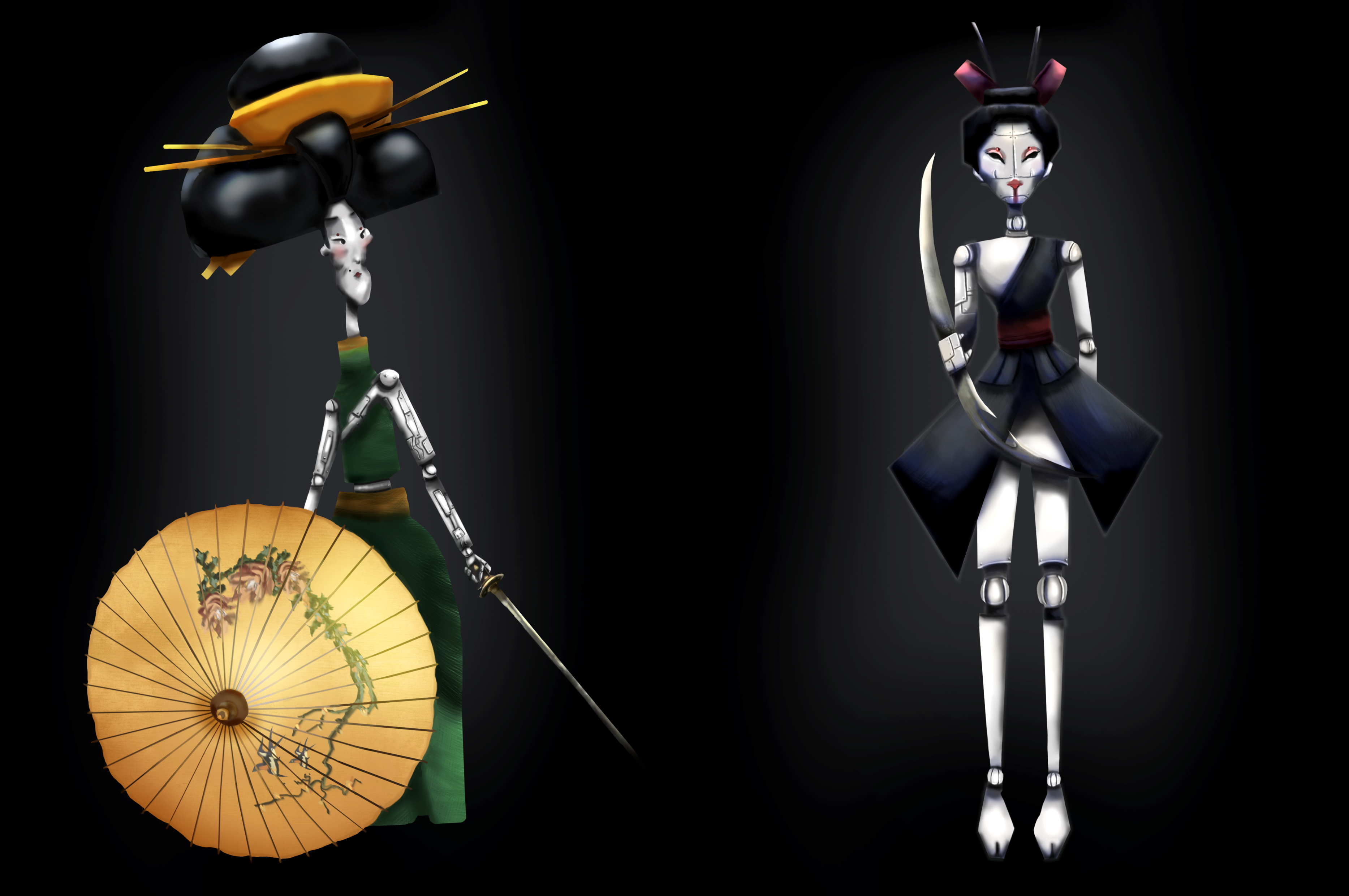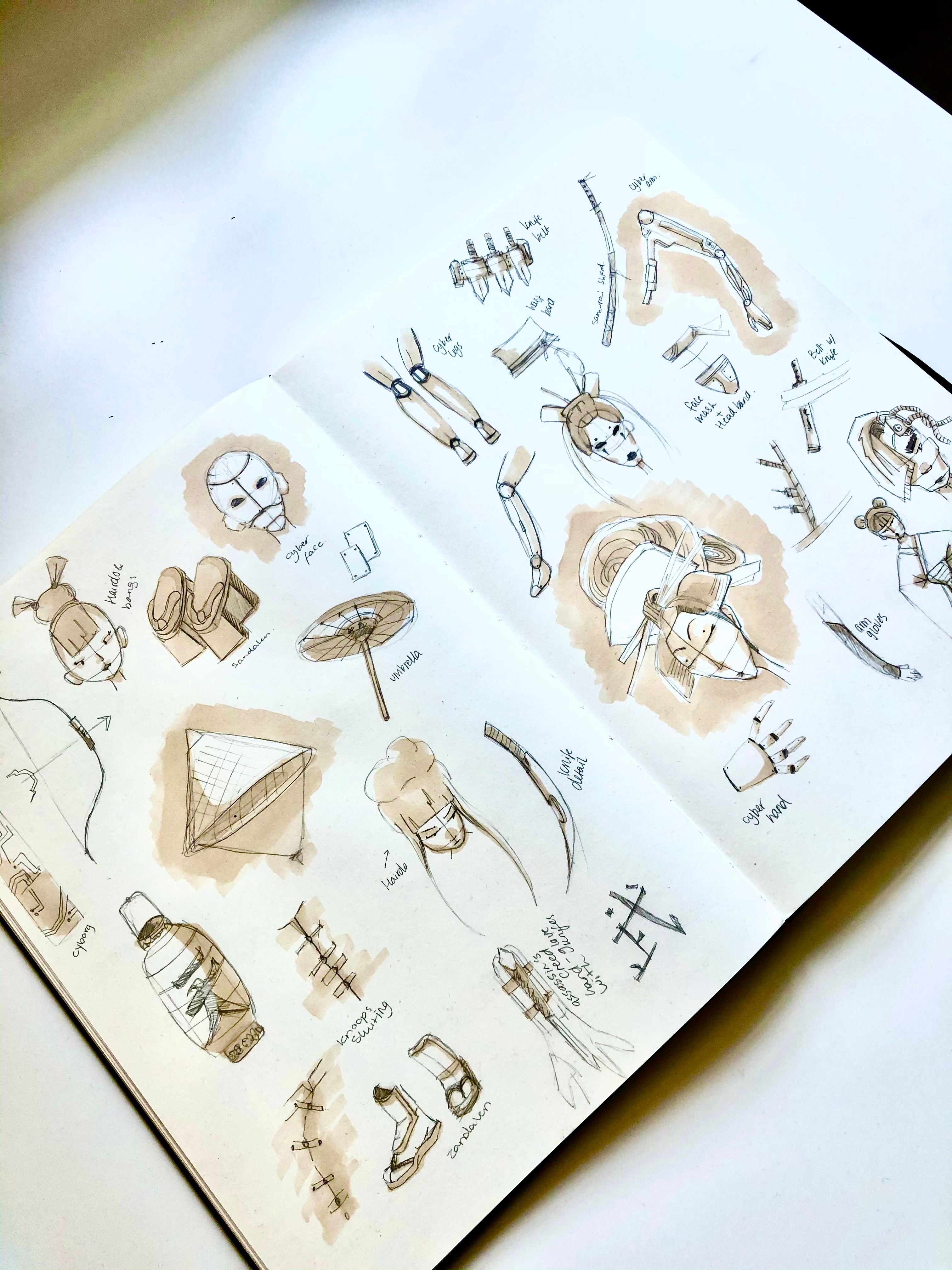 The final of my character design illustrations and explorations. The theme I chose was: Oriental Cyber Assassins. Cyber PrincessCyber LadyDesign Sheet Cyber PrincessDesign Sheet Cyber LadyThis was my original line up. I decided to pick 2 which spoke to me the most!This is a page of sketches for the Oriental cyber assassins.