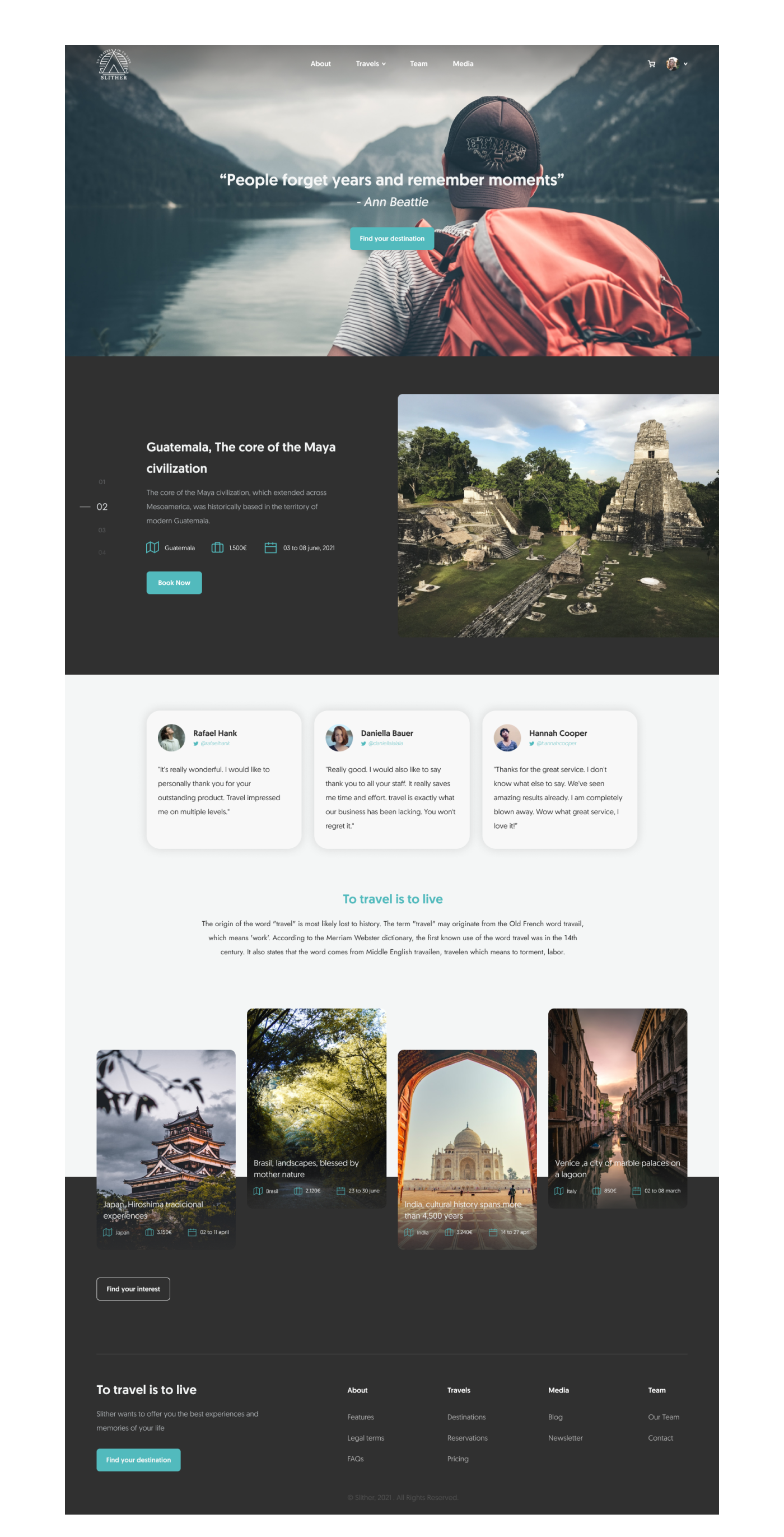 Slither se enfoca en organizar viajes y guías turísticos de una manera inusual. Cada viaje tiene diferentes niveles de comodidad y dificultad para los más aventureros.
