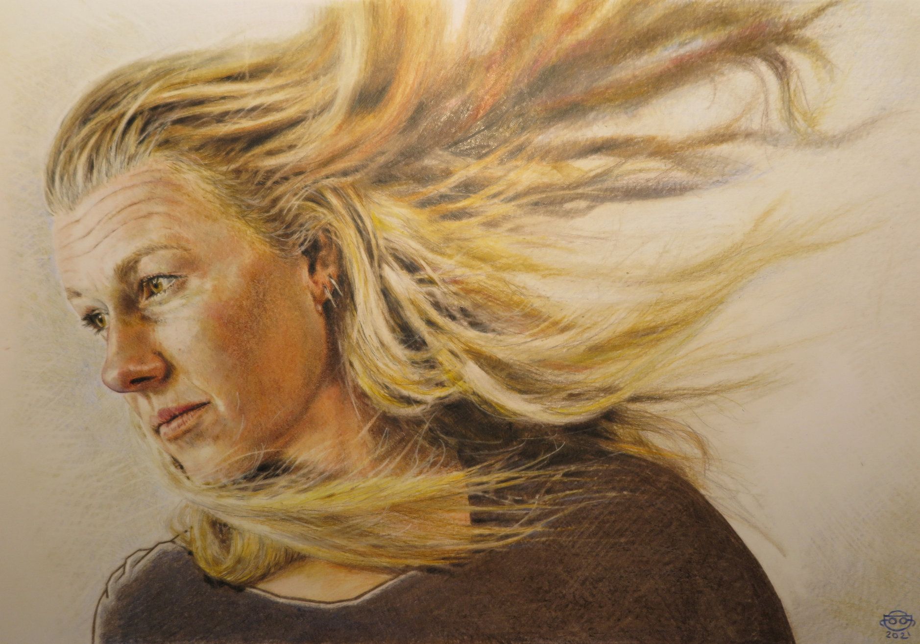I challenged myself to draw long hair in a stormy wind condition. So I asked a good friend to pose. Here is the result! What do you think? We did a photo shoot first with a hair dryer and a fan to capture the dynamics. Learned a lot with this project.