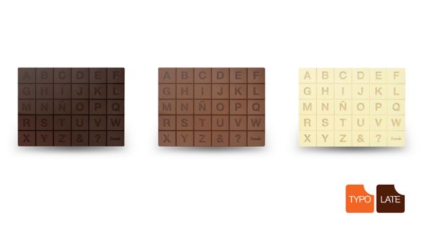 TypoLate es un producto propio, creado como regalo de Navidad para amigos y clientes. Se trataba de tres tabletas de chocolate de diferentes sabores, con una letra grabada en cada onza.