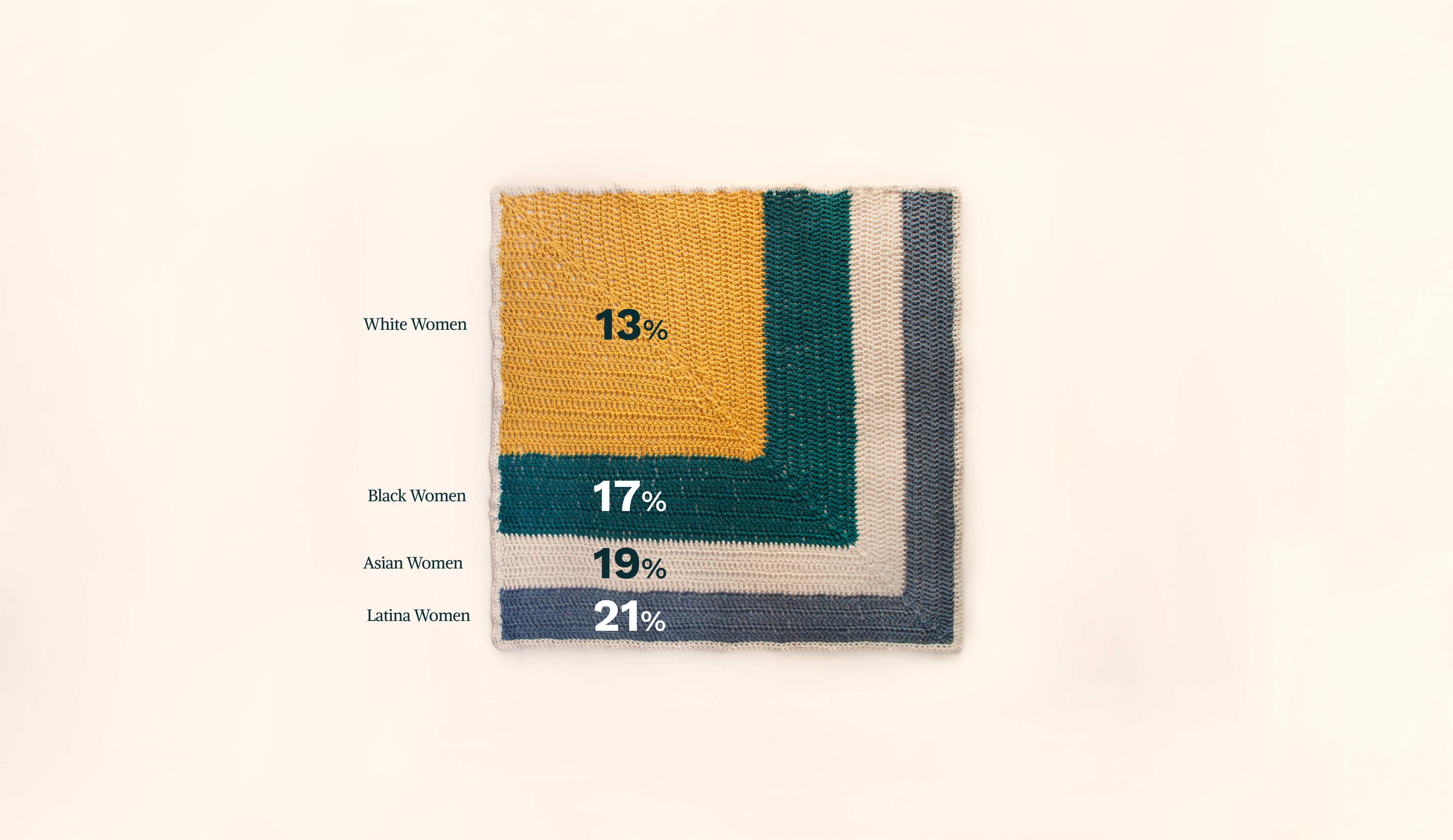 At the beginning of 2020, I created Women’s Work, a series of 12 cross stitched artworks that depict data about women in the workplace. Once the Covid-19 pandemic was in full swing, there were many media outlets reporting the unique impact the pandemic had on women, namely non-white women and mothers.