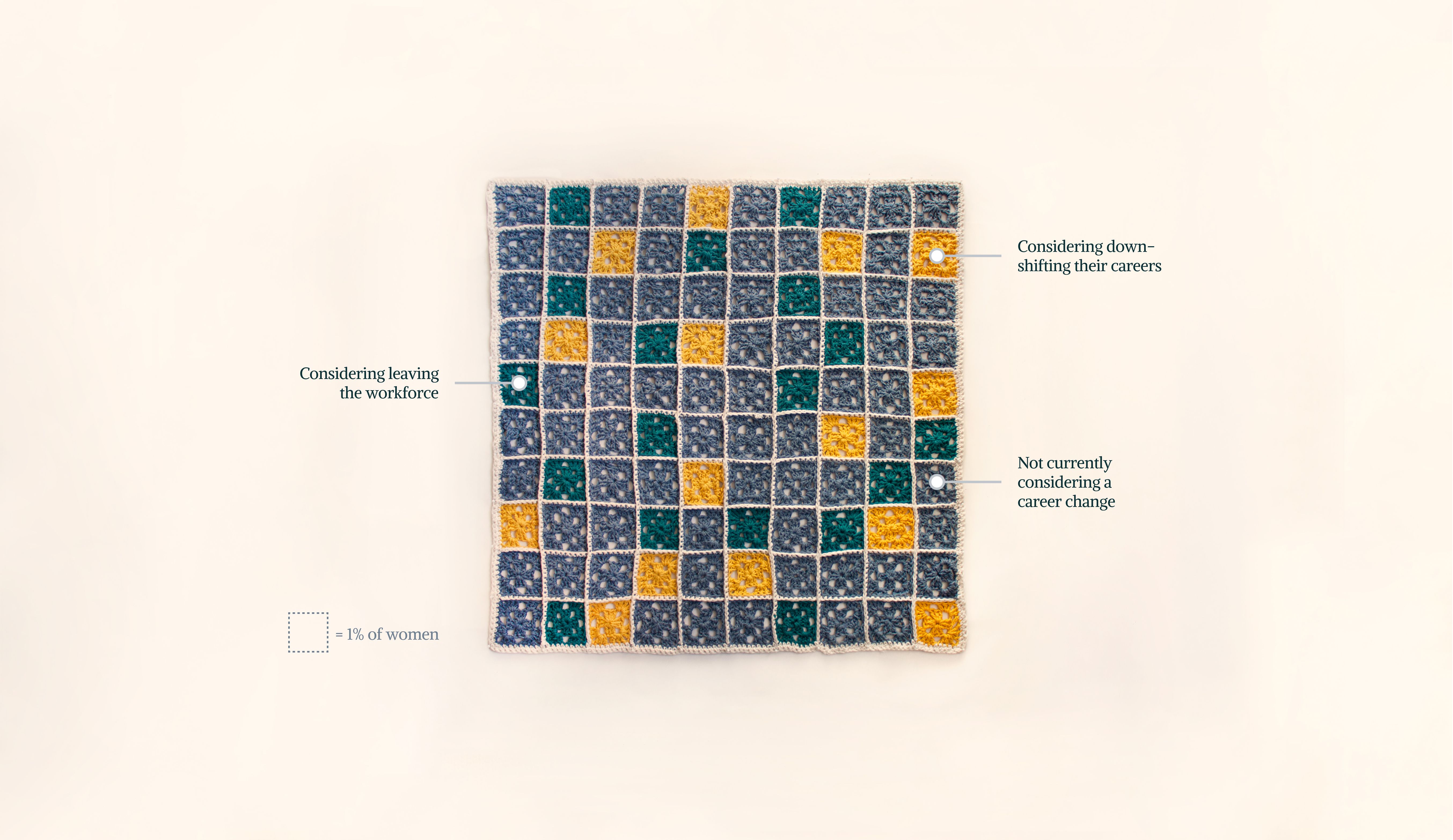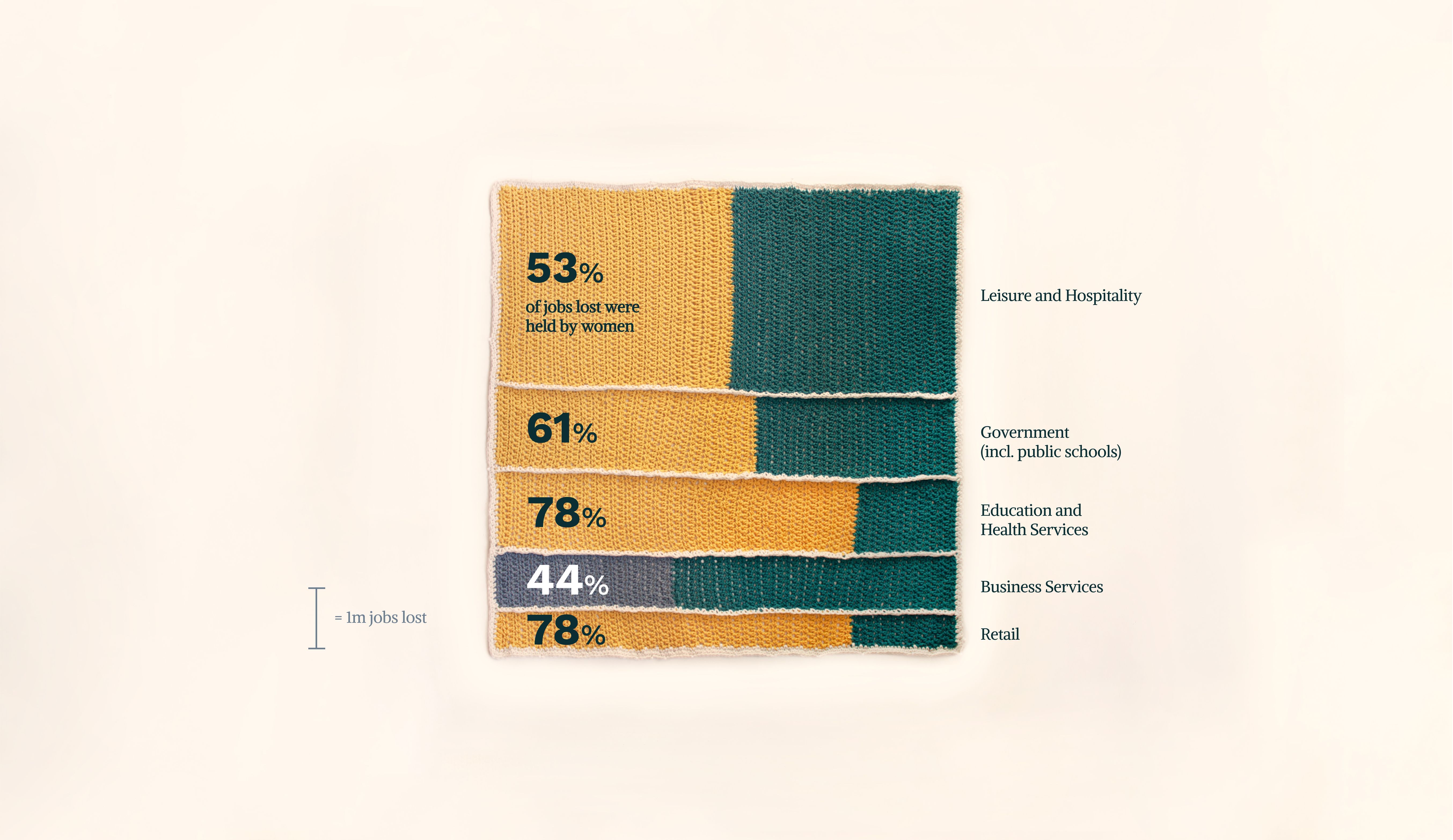 I decided to expand my work to specifically comment on the state of working women during the pandemic, this time using crochet to display data. My use of textile art is meant to add meaning to the data, symbolizing “women’s work” in both the content and the medium.