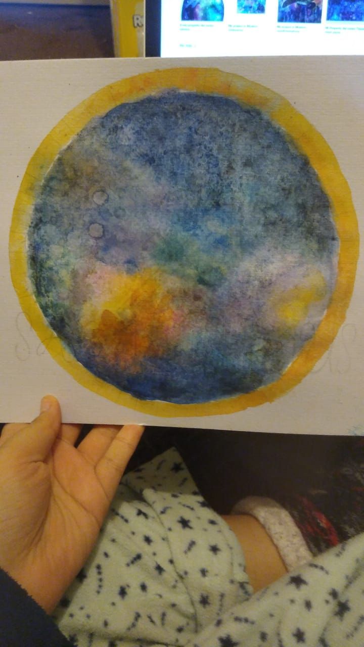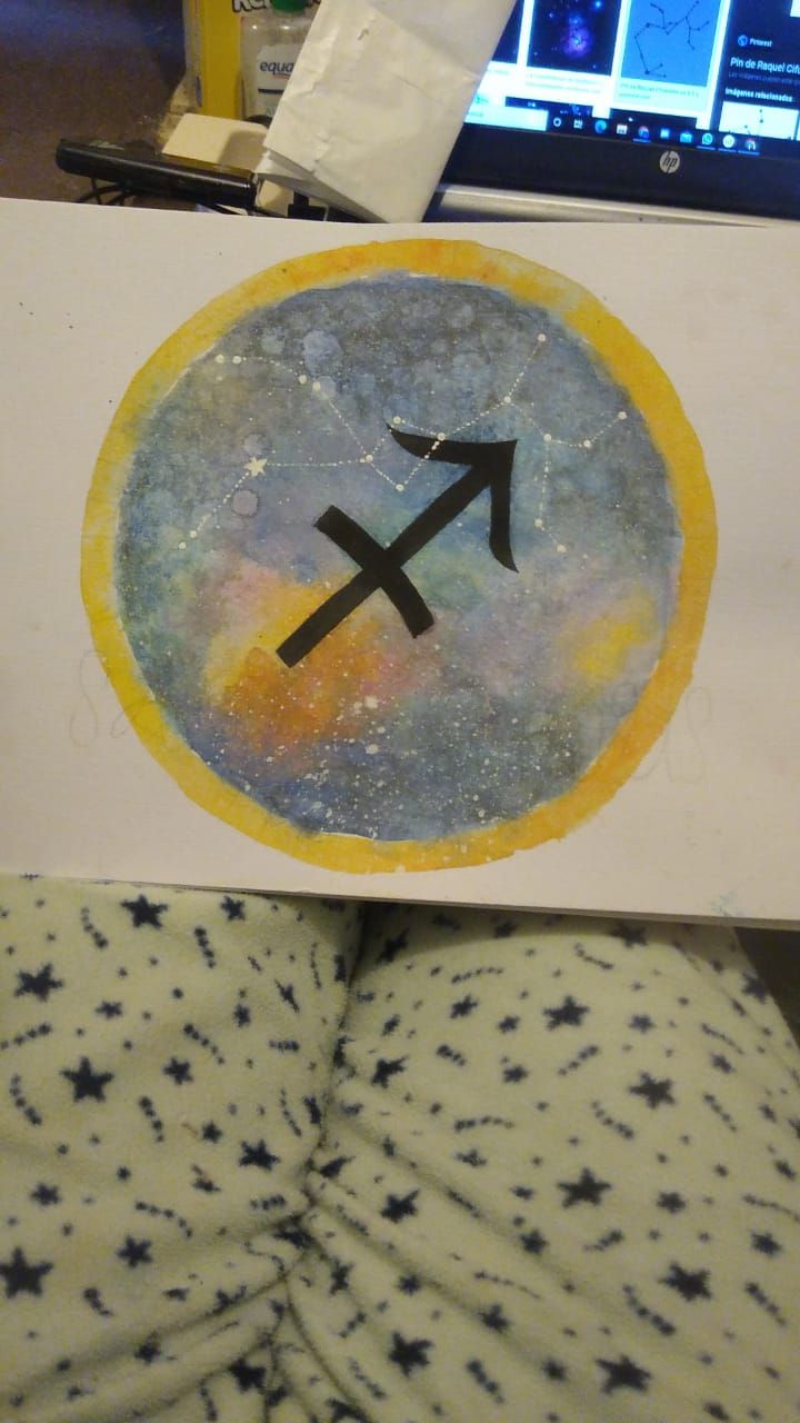 Fue difícil utilizar el plumón sobre la acuarela seca ya que este se secaba y tenia que pasarlo repetidas veces para que "soltara la tinta" y no se estropeara (por eso tantas pruebas del plumón), también que cuando me emociono hago movimientos medios erráticos derramando gotitas de acuarela sobre la parte blanca del lienzo (y el computador, el piso, mi ropa, etc) y la primera vez que le puse gotitas blancas se me fue l mano con la carga del cepillo de dientes, cosas de las que se va aprendiendo.