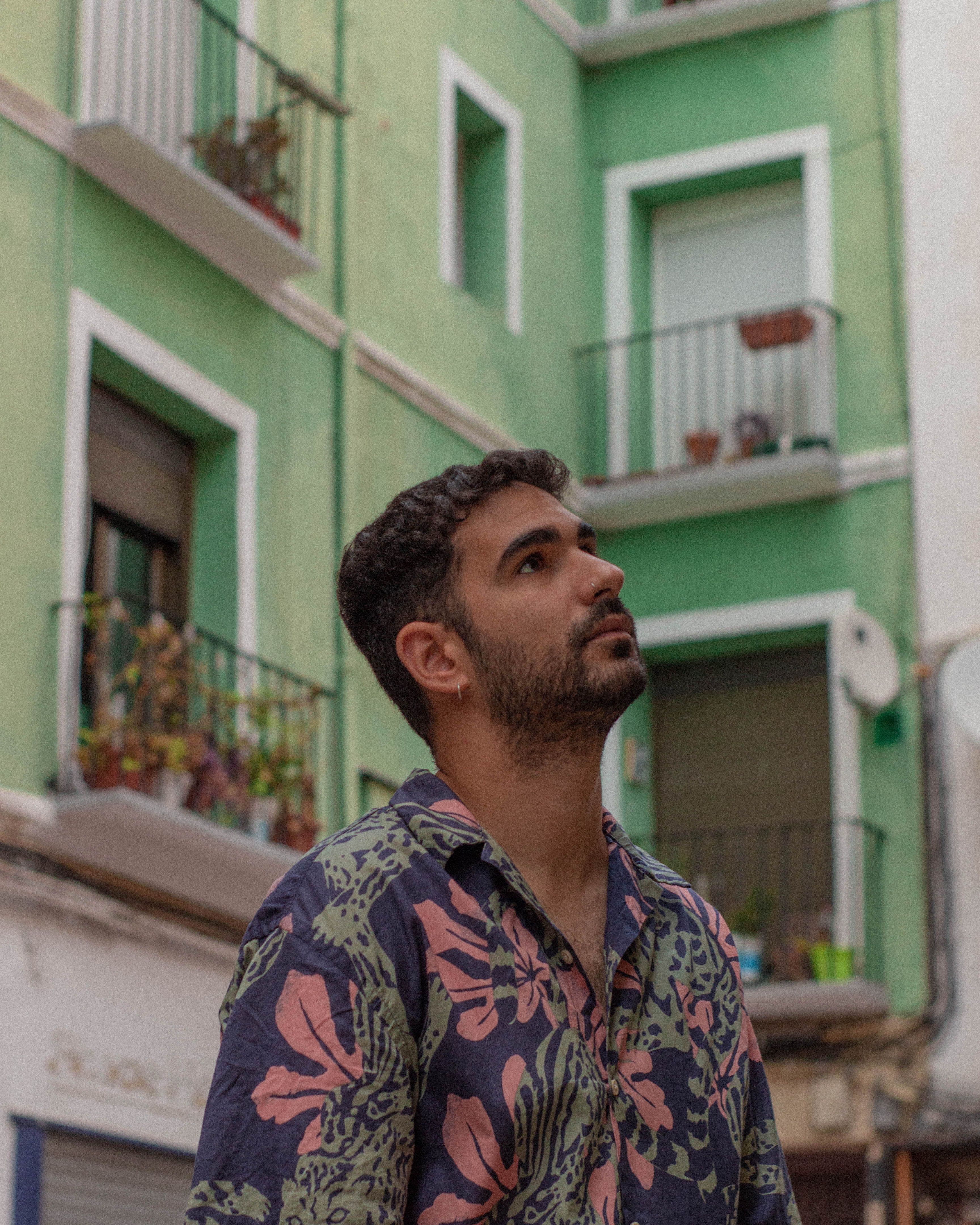 Personalmente la foto del edificio verde de fondo es la que más me gusta, ya que combinaba muy bien con la camisa del modelo.