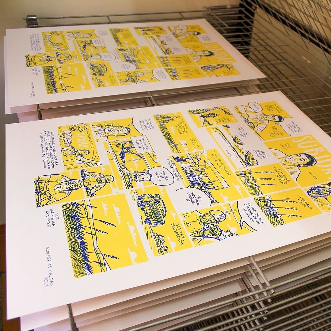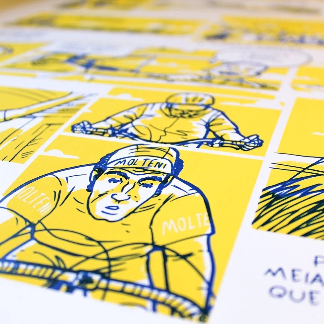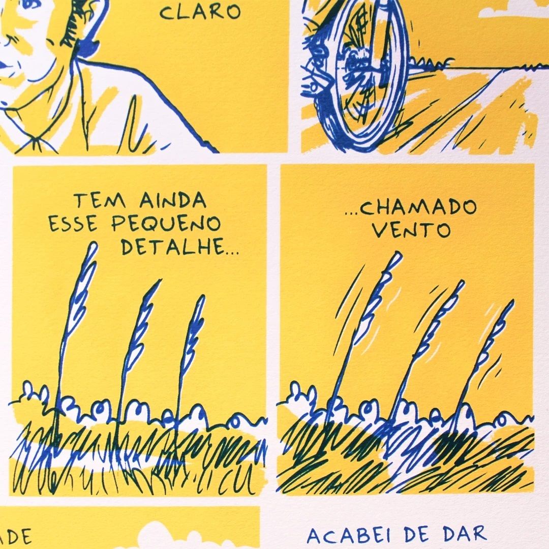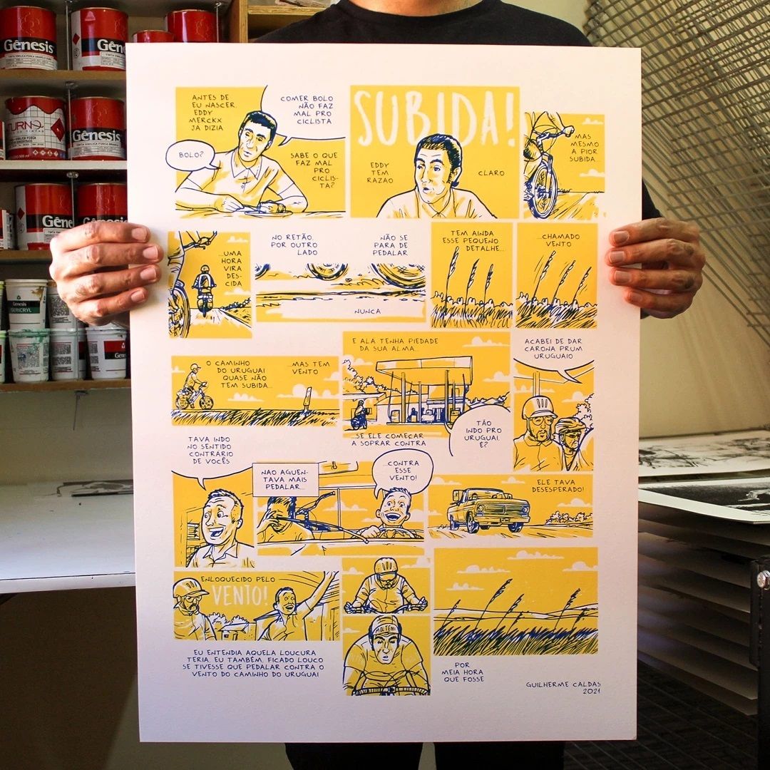 HQ adaptada do livro, "Bonitinha, e outras bicicletas", transformada em pôster serigrafado dentro do projeto Chamada Serigráfica, do estúdio Caderno Listrado.