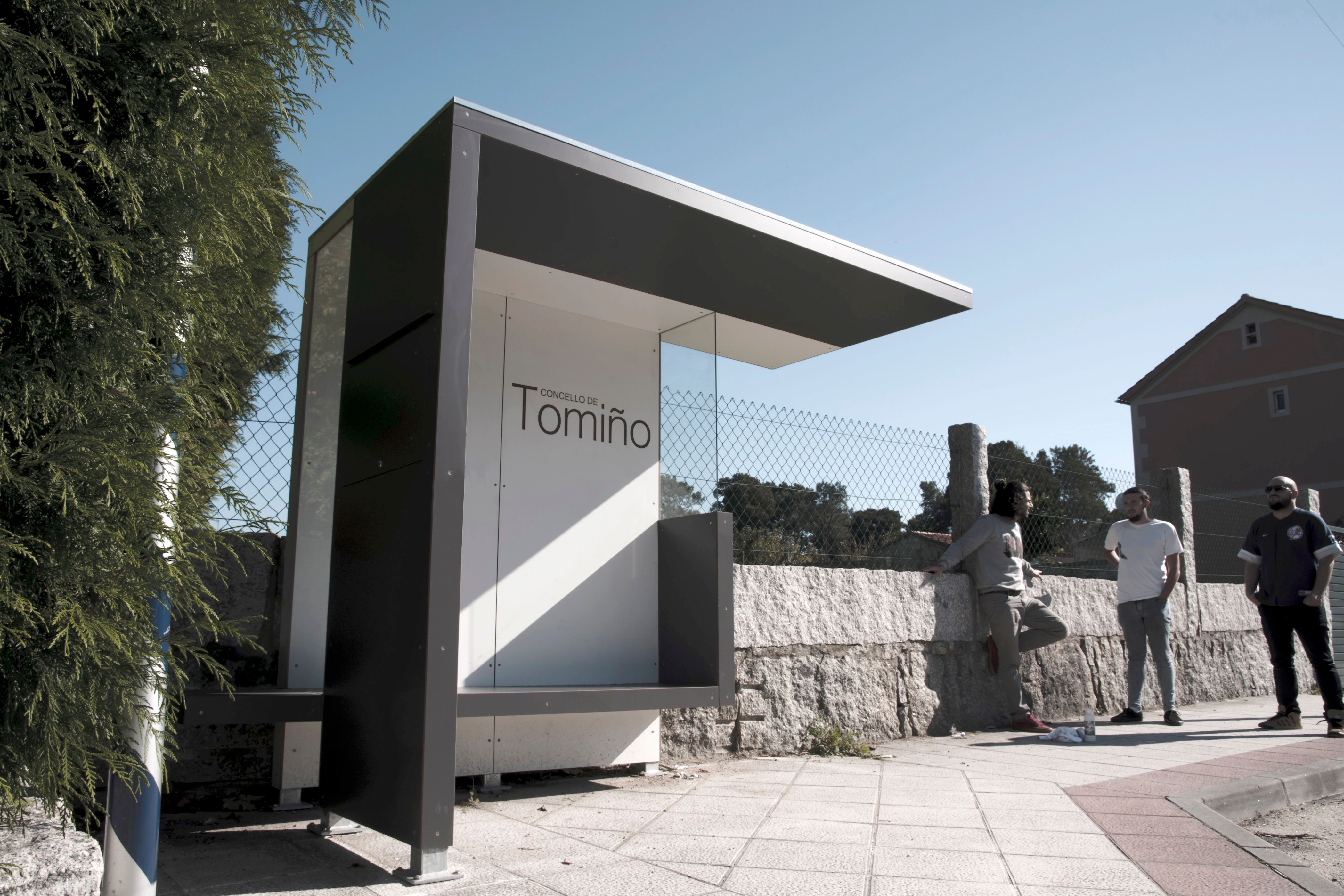 Coordinados por los arquitectos Tito Cendón y Javier Vázquez. Los estudiantes Junior Alén Costa, Alejandro Tartaglione y Roi Pérez Alonso de la Escuela de Artes Superior Mestre Mateo de Santiago de Compostela han presentado un prototipo en forma de dos "L", una que funciona como techo y otra como banco, con material resistente y escasez de cristal para evitar roturas. Se caracteriza por una apariencia neutra con el fin de no romper estéticamente con ningún punto de la localidad.