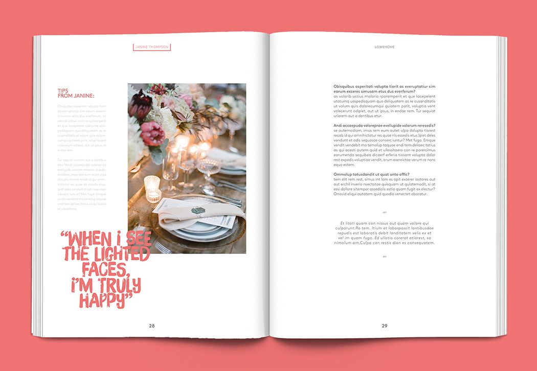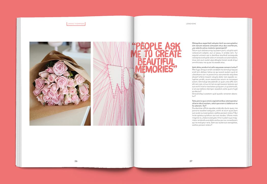 Magazine proposal for the "Creamy Editorial Design" course taught by relajaelcoco at Mr. Marcel School in Madrid. The design was based on the website lowehome.tumblr.com, a Nordic-style interior design inspiration. The concept was to showcase the presence of people in the home, while maintaining a clean and aseptic aesthetic reminiscent of the blog and the images presented. A young and irreverent personality was also proposed to attract the potential female audience who regularly read the blog.