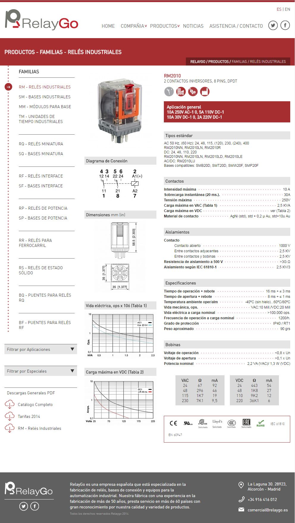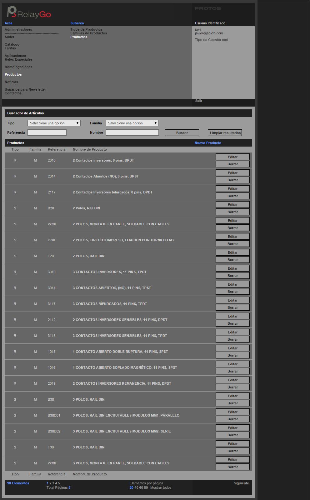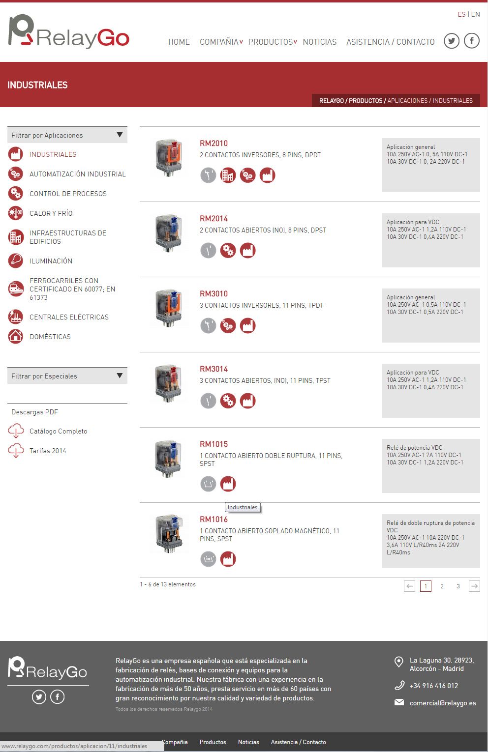 sistema de multi-campo para el producto dela web (Relés) habiendo creado un sistema a medida de creación de propiedades/características (multicampo) para cada Relé.