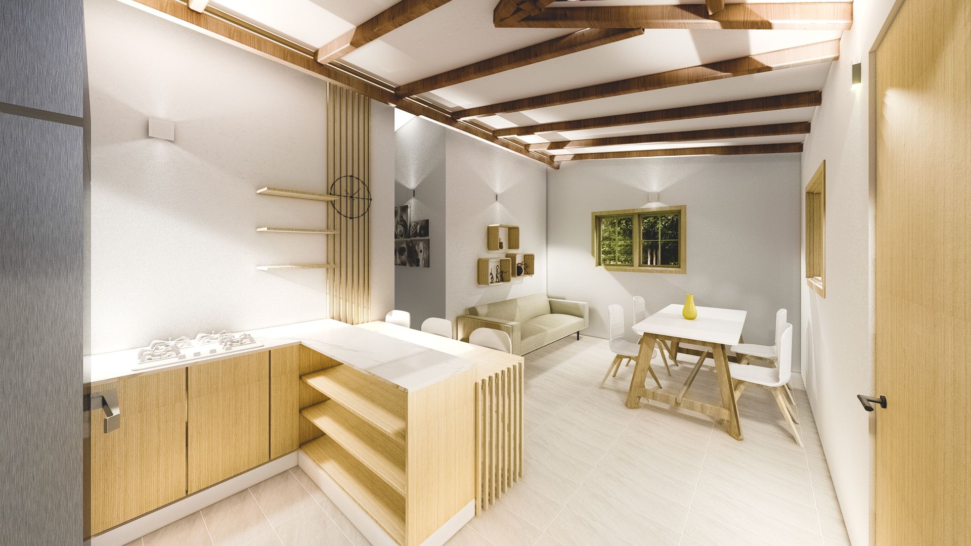 Cabaña Tulipanes, Ubicada en Boyacá, el cliente escogió una tipología arquitectónica con unos requerimientos específicos de espacios, donde pudiera compartir con sus hijos y a la vez poder estar en un espacio acogedor, el proyecto se encuentra rodeado de naturaleza, desde su interior se aprovechan los espacios basados en el refugio que mencionaba el cliente.
