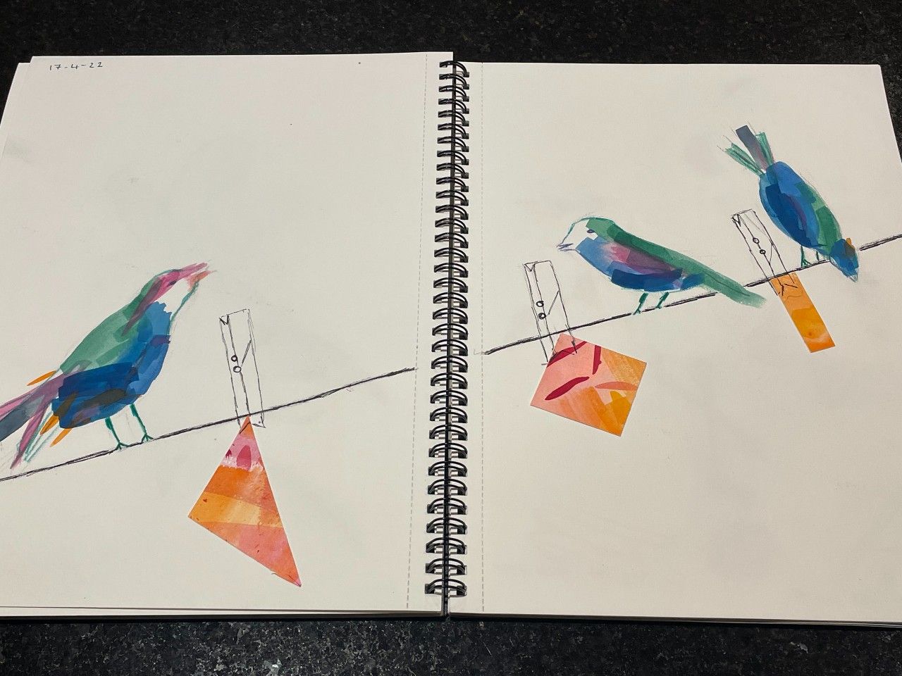 O, da, Robyn, super! Ai folosit colajul foarte bine și ce semne minunate pe hârtii. Îmi plac în mod special formele atârnate de pe sfoara de rufe! Bravo.