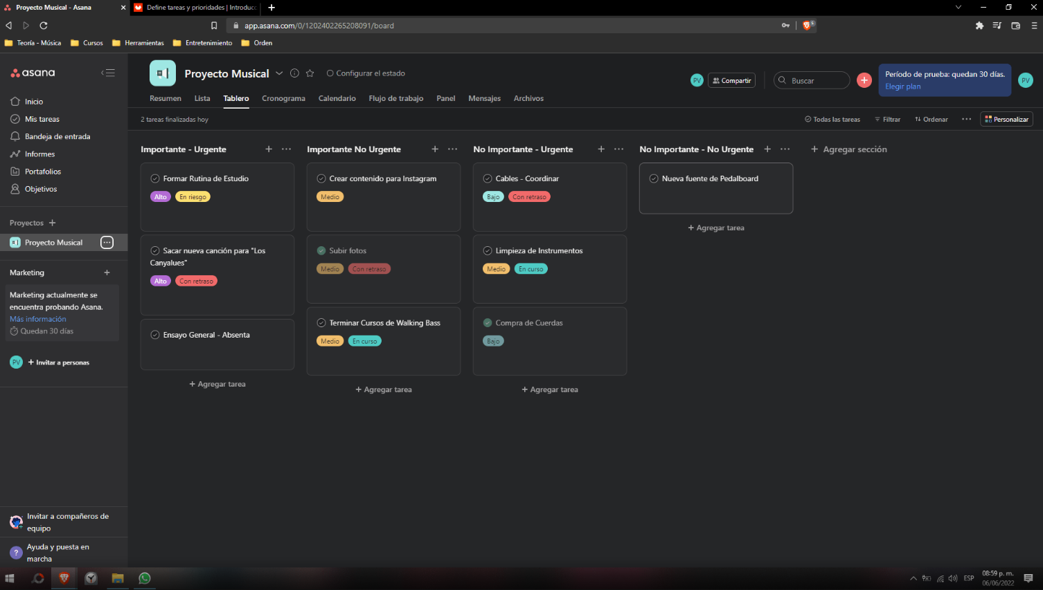 3. Utilicé Asana para ordenar la prioridad de mis tareas.